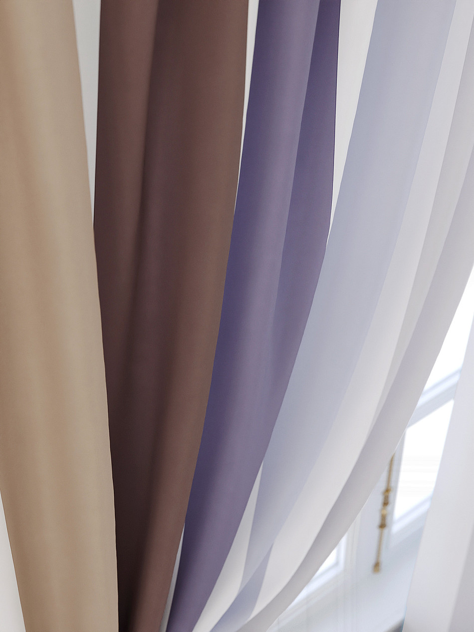 Габардин представляет собой целую группу тканей, которые отличаются содержанием и сочетанием различных волокон – хлопка, шелка, шерсти или синтетики. В зависимости от состава материала, шторы из габардина могут быть разными по плотности и внешнему виду, но всегда отличаются характерным декоративным рубчиком на поверхности. Габардин – идеальная ткань для пошива штор, поскольку она отлично дышит, не мнется, легкая и мягкая на ощупь, но при этом прочная и хорошо защищает от солнечных лучей.