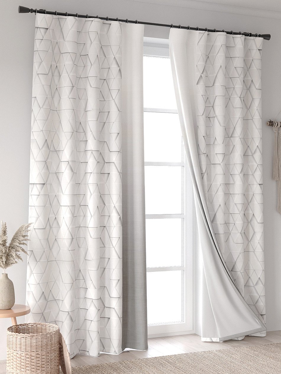Шторы из ткани блэкаут надежно защищают комнату от нежелательного света. Шторы препятствуют проникновению солнечных лучей на 9 из 10. Ткань блэкаут обеспечивает хорошее затенение благодаря особому трехслойному составу. Кроме затенения, шторы блэкаут, благодаря плотности, делают менее слышимым уличный шум и препятствуют сквознякам. Шторы просты в уходе, не линяют при стирке и не мнутся.