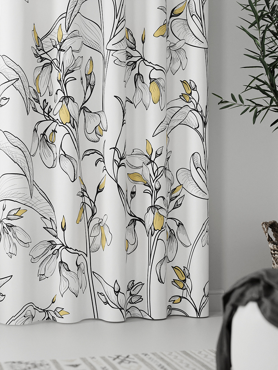 Комплект штор из легкой портьерной ткани (габардин) оформлен печатным рисунком. Печатный рисунок дает широкие возможности обновить интерьер фактически нет требуя ремонта за счет огромного выбора. Ткани с печатным рисунком безопасны и не содержат токсичных веществ. Не смотря на то что, материал легкий, он имеет высокую плотность, мало загрязнятся и не требует особого ухода даже после стирки, что важно для кухонных занавесок. Шторы не выцветают, не растягиваются, превосходно драпируются, образуя струящиеся складки. Прекрасное решение для создания красоты и уюта с помощью уникальных дизайнов.