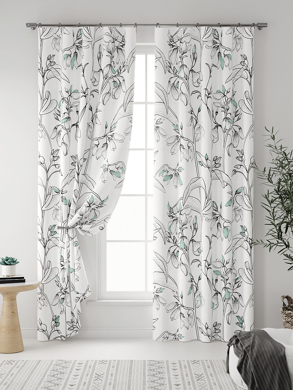 Комплект штор из легкой портьерной ткани (габардин) оформлен печатным рисунком. Печатный рисунок дает широкие возможности обновить интерьер фактически нет требуя ремонта за счет огромного выбора. Ткани с печатным рисунком безопасны и не содержат токсичных веществ. Не смотря на то что, материал легкий, он имеет высокую плотность, мало загрязнятся и не требует особого ухода даже после стирки, что важно для кухонных занавесок. Шторы не выцветают, не растягиваются, превосходно драпируются, образуя струящиеся складки. Прекрасное решение для создания красоты и уюта с помощью уникальных дизайнов.