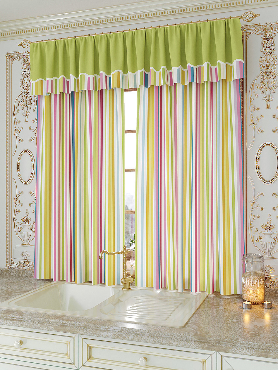 Портьеры 150х180 см. — 2 шт., Ламбрекен 300х40 см. — 1 шт. ( Изменить высоту) Крепление: шторная лента (крючки), кулиска Подробнее
