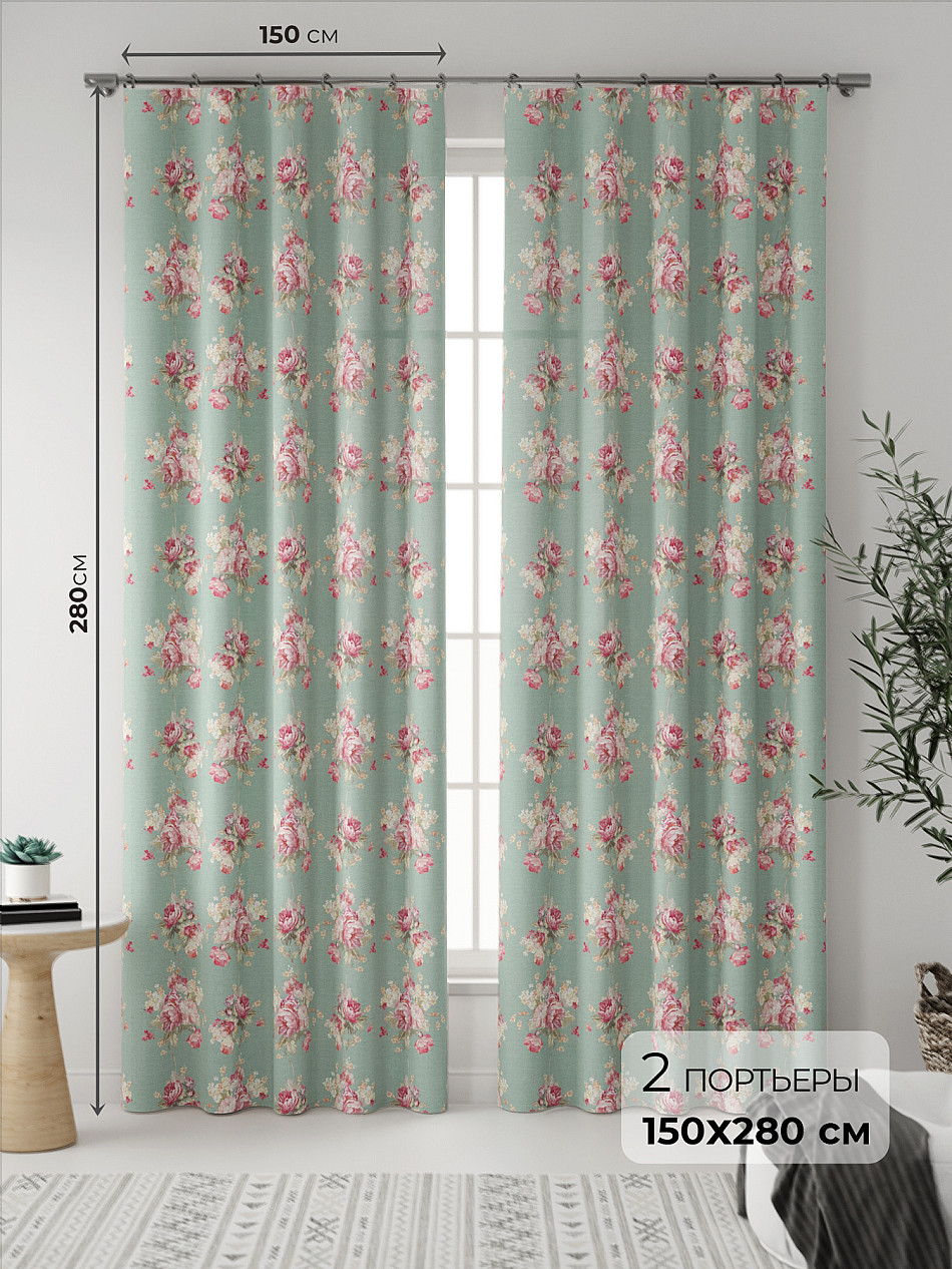 Портьера 2 шт. — 150х280 см. ( Уменьшить высоту ) Крепление: шторная лента (крючки), кулиска Подробнее