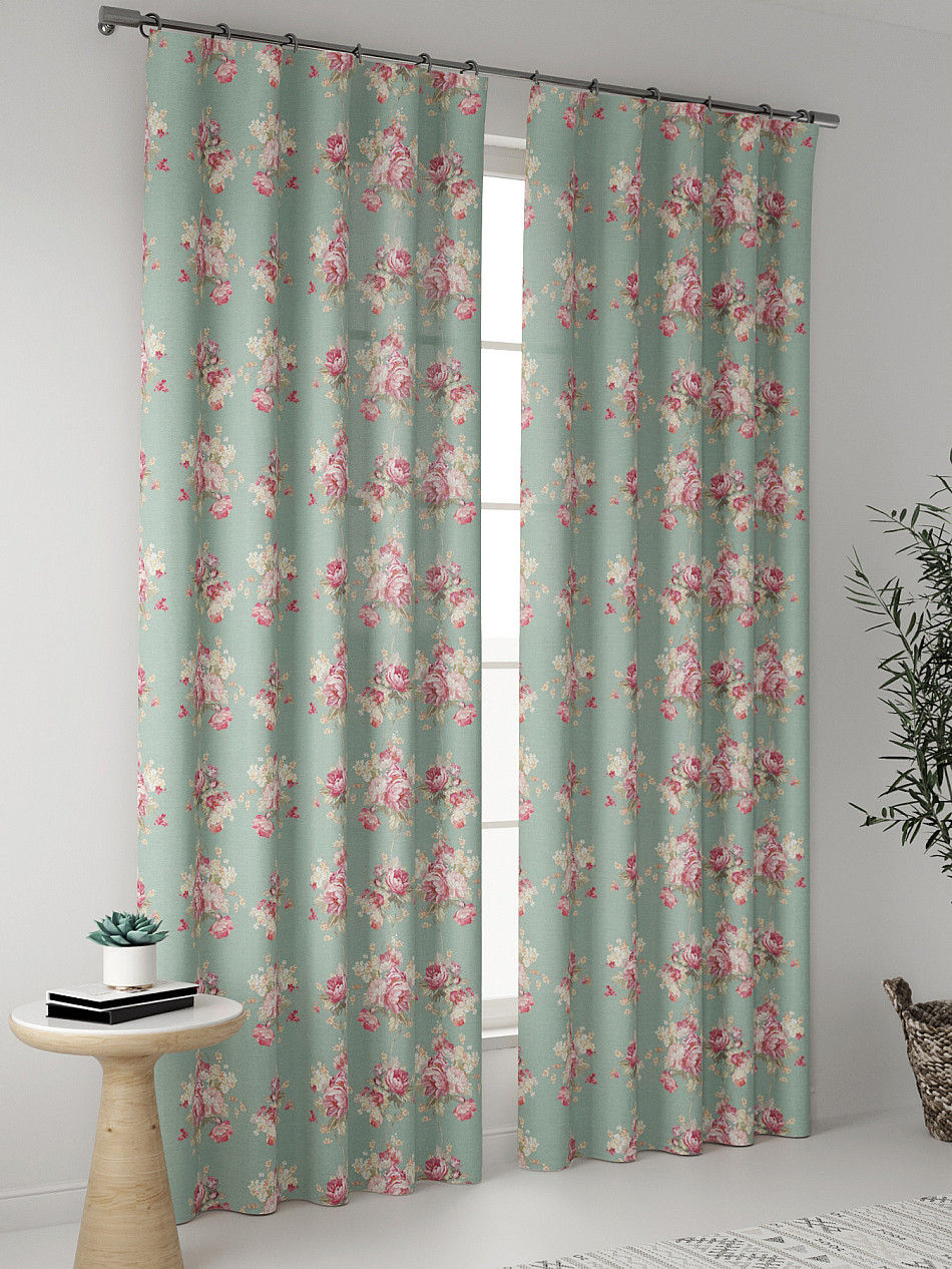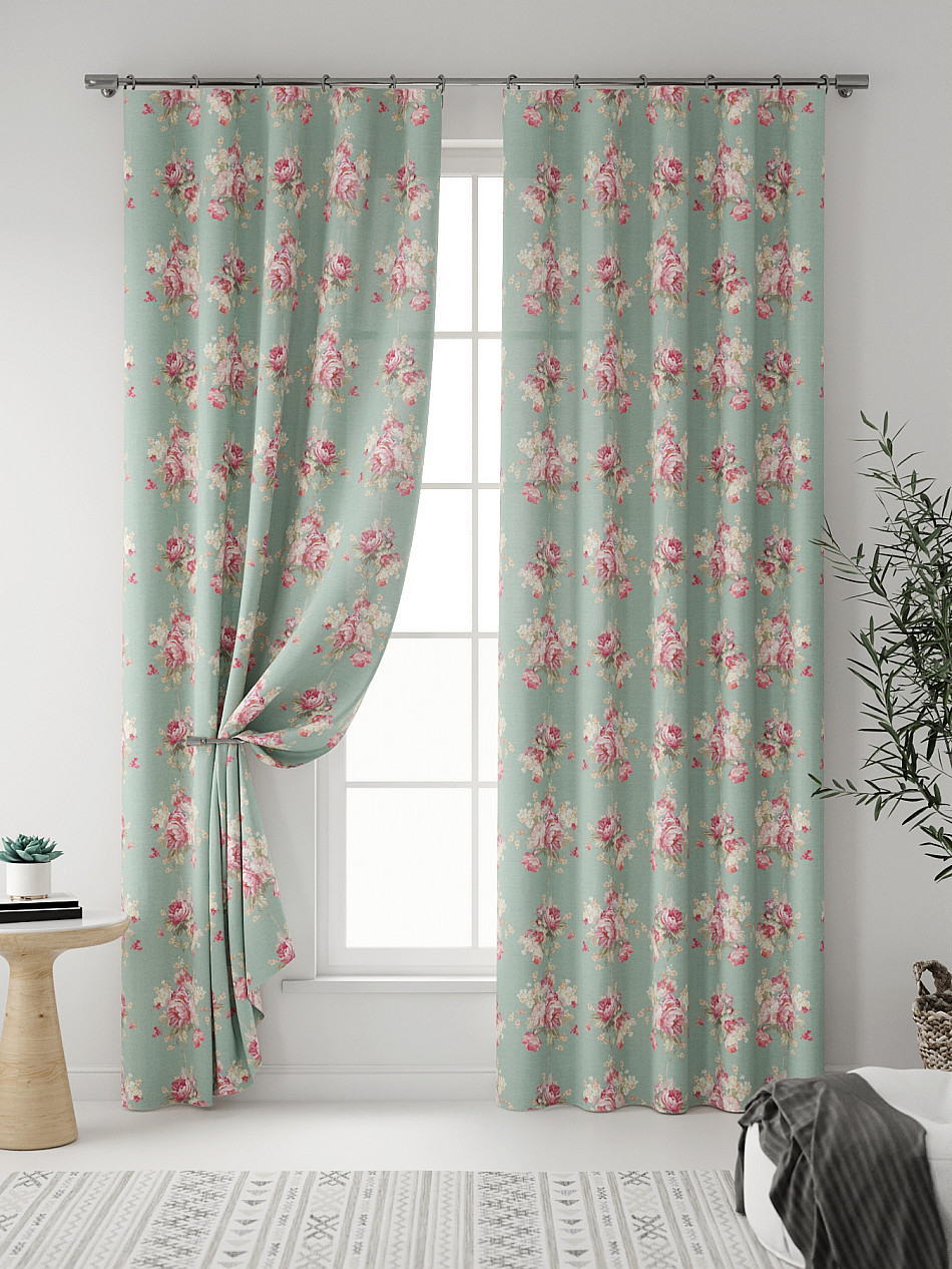 Комплект штор из легкой портьерной ткани (габардин) оформлен печатным рисунком. Печатный рисунок дает широкие возможности обновить интерьер фактически нет требуя ремонта за счет огромного выбора. Ткани с печатным рисунком безопасны и не содержат токсичных веществ. Не смотря на то что, материал легкий, он имеет высокую плотность, мало загрязнятся и не требует особого ухода даже после стирки, что важно для кухонных занавесок. Шторы не выцветают, не растягиваются, превосходно драпируются, образуя струящиеся складки. Прекрасное решение для создания красоты и уюта с помощью уникальных дизайнов.