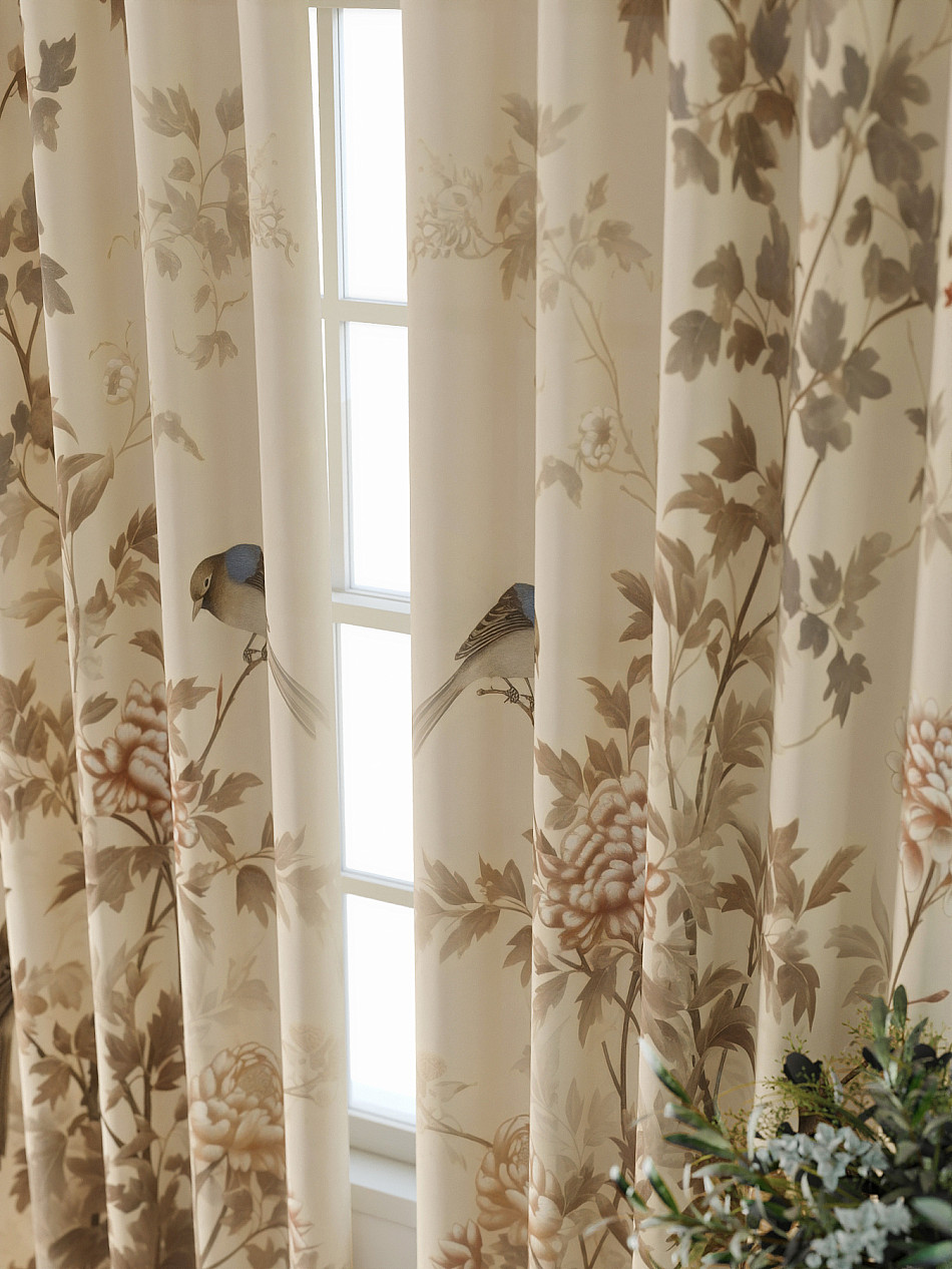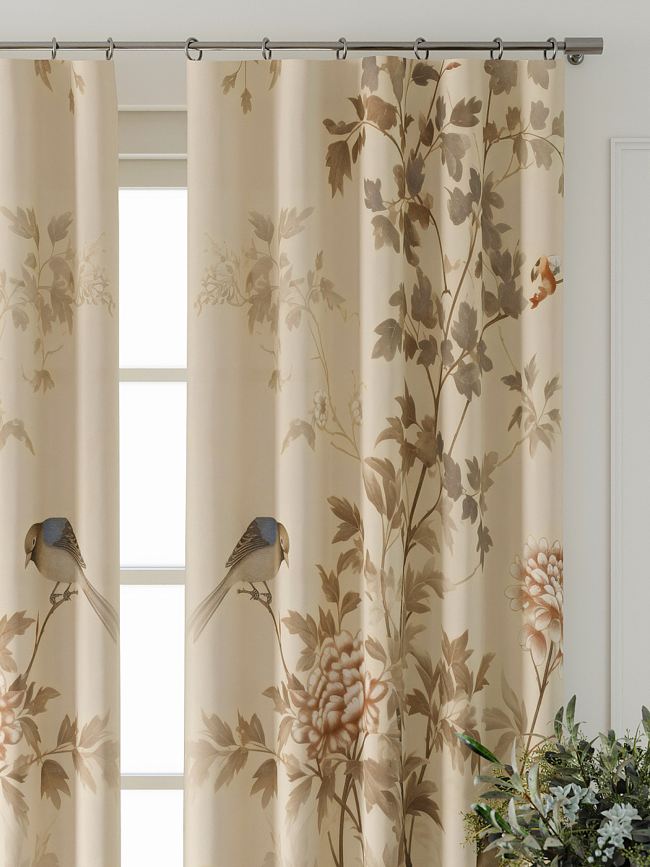 Натуральные цвета Птицы Растения Фото принтАксессуары для оформления штор: