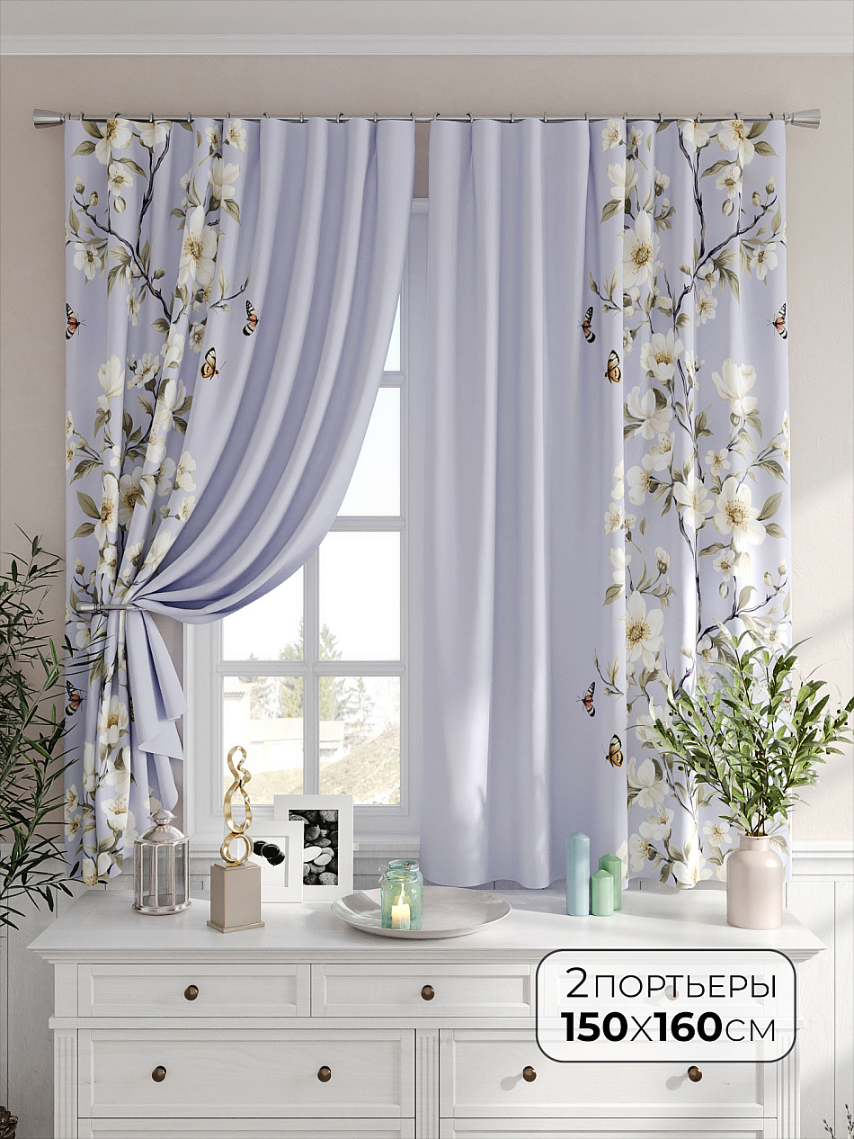 Портьеры 150х160 см — 2 шт. ( Изменить высоту) Крепление: шторная лента (крючки), кулиска Подробнее