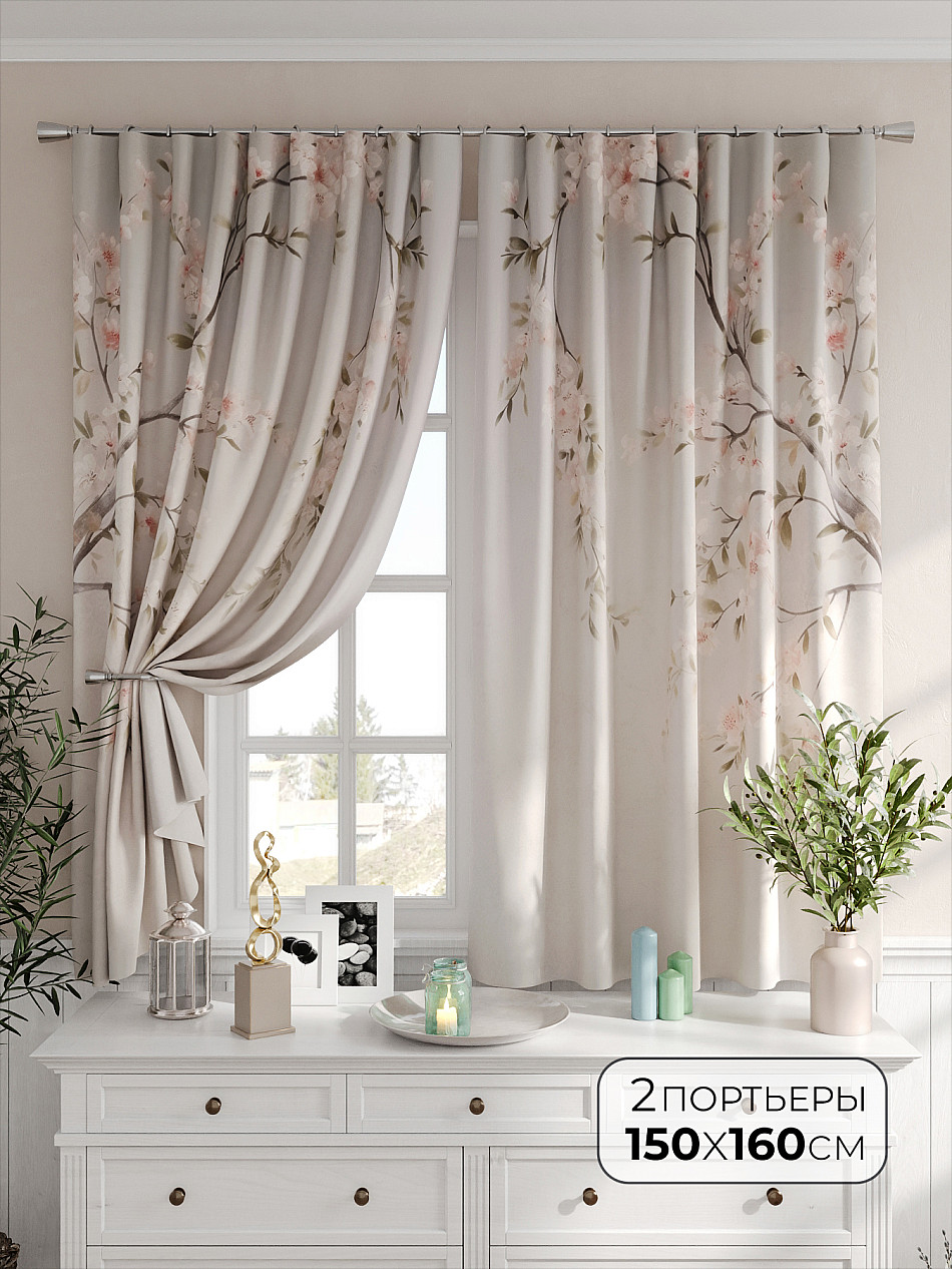 Портьеры 150х160 см — 2 шт. ( Изменить высоту) Крепление: шторная лента (крючки), кулиска Подробнее
