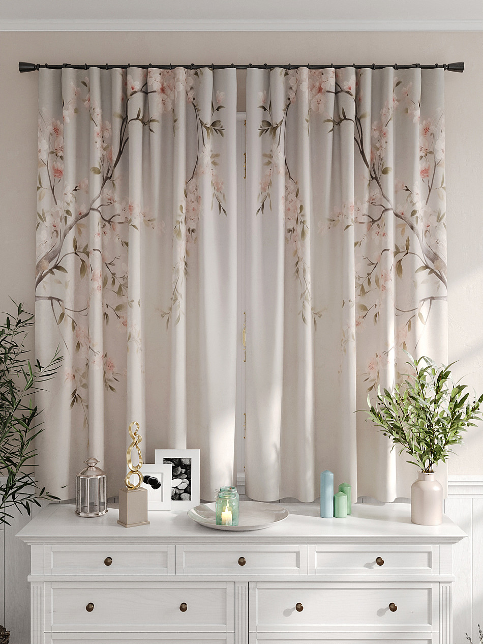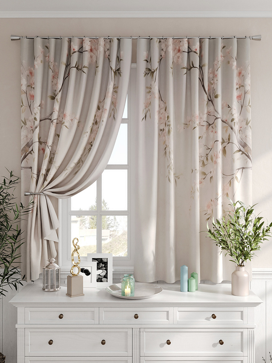 Портьеры 2 шт. Комплект штор из легкой портьерной ткани (габардин) оформлен печатным рисунком. Печатный рисунок дает широкие возможности обновить интерьер фактически не требуя ремонта за счет огромного выбора. Ткани с печатным рисунком безопасны и не содержат токсичных веществ. Не смотря на то, что материал легкий, он имеет высокую плотность, мало загрязнятся и не требует особого ухода даже после стирки, что важно для кухонных занавесок. Шторы не выцветают, не растягиваются, превосходно драпируются, образуя струящиеся складки. Прекрасное решение для создания красоты и уюта с помощью уникальных дизайнов.