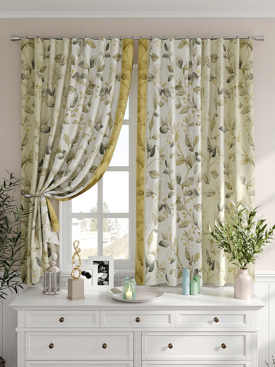 Портьеры 2 шт. Комплект штор из легкой портьерной ткани (габардин) оформлен печатным рисунком. Печатный рисунок дает широкие возможности обновить интерьер фактически не требуя ремонта за счет огромного выбора. Ткани с печатным рисунком безопасны и не содержат токсичных веществ. Не смотря на то, что материал легкий, он имеет высокую плотность, мало загрязнятся и не требует особого ухода даже после стирки, что важно для кухонных занавесок. Шторы не выцветают, не растягиваются, превосходно драпируются, образуя струящиеся складки. Прекрасное решение для создания красоты и уюта с помощью уникальных дизайнов.