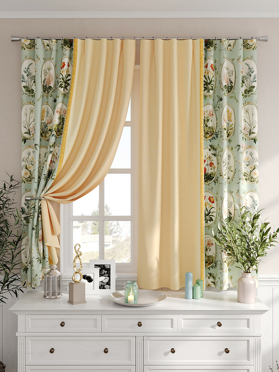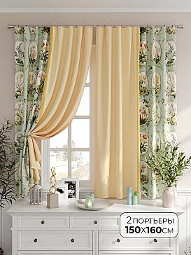 Портьеры 2 шт. Комплект штор из легкой портьерной ткани (габардин) оформлен печатным рисунком. Печатный рисунок дает широкие возможности обновить интерьер фактически не требуя ремонта за счет огромного выбора. Ткани с печатным рисунком безопасны и не содержат токсичных веществ. Не смотря на то, что материал легкий, он имеет высокую плотность, мало загрязнятся и не требует особого ухода даже после стирки, что важно для кухонных занавесок. Шторы не выцветают, не растягиваются, превосходно драпируются, образуя струящиеся складки. Прекрасное решение для создания красоты и уюта с помощью уникальных дизайнов.