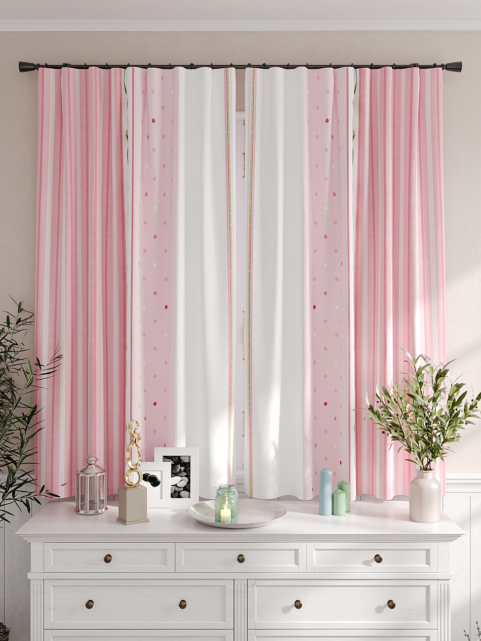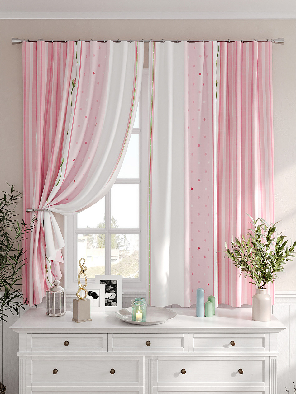 Портьеры 2 шт. Комплект штор из легкой портьерной ткани (габардин) оформлен печатным рисунком. Печатный рисунок дает широкие возможности обновить интерьер фактически не требуя ремонта за счет огромного выбора. Ткани с печатным рисунком безопасны и не содержат токсичных веществ. Не смотря на то, что материал легкий, он имеет высокую плотность, мало загрязнятся и не требует особого ухода даже после стирки, что важно для кухонных занавесок. Шторы не выцветают, не растягиваются, превосходно драпируются, образуя струящиеся складки. Прекрасное решение для создания красоты и уюта с помощью уникальных дизайнов.