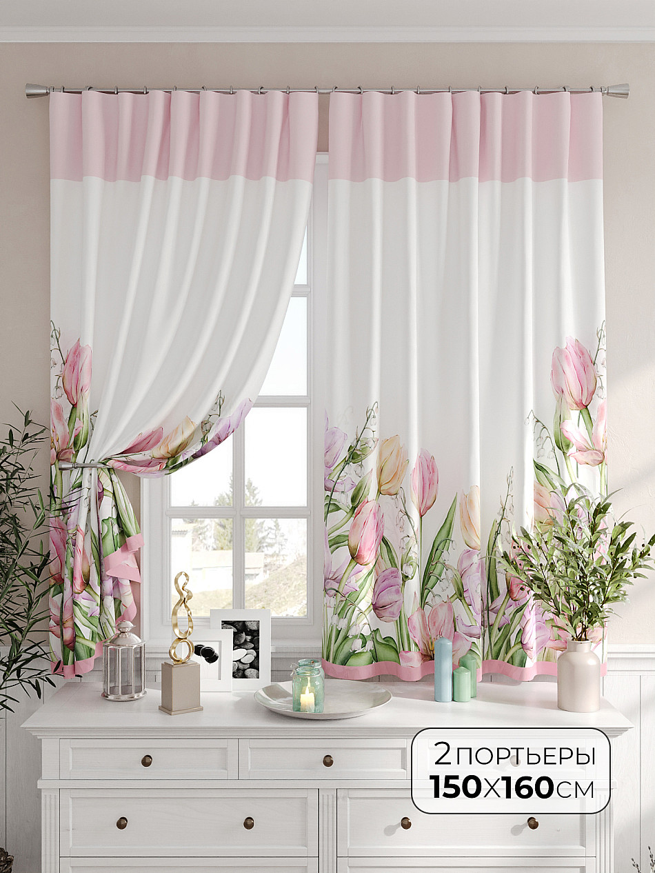 Портьеры 150х160 см — 2 шт. ( Изменить высоту) Крепление: шторная лента (крючки), кулиска Подробнее