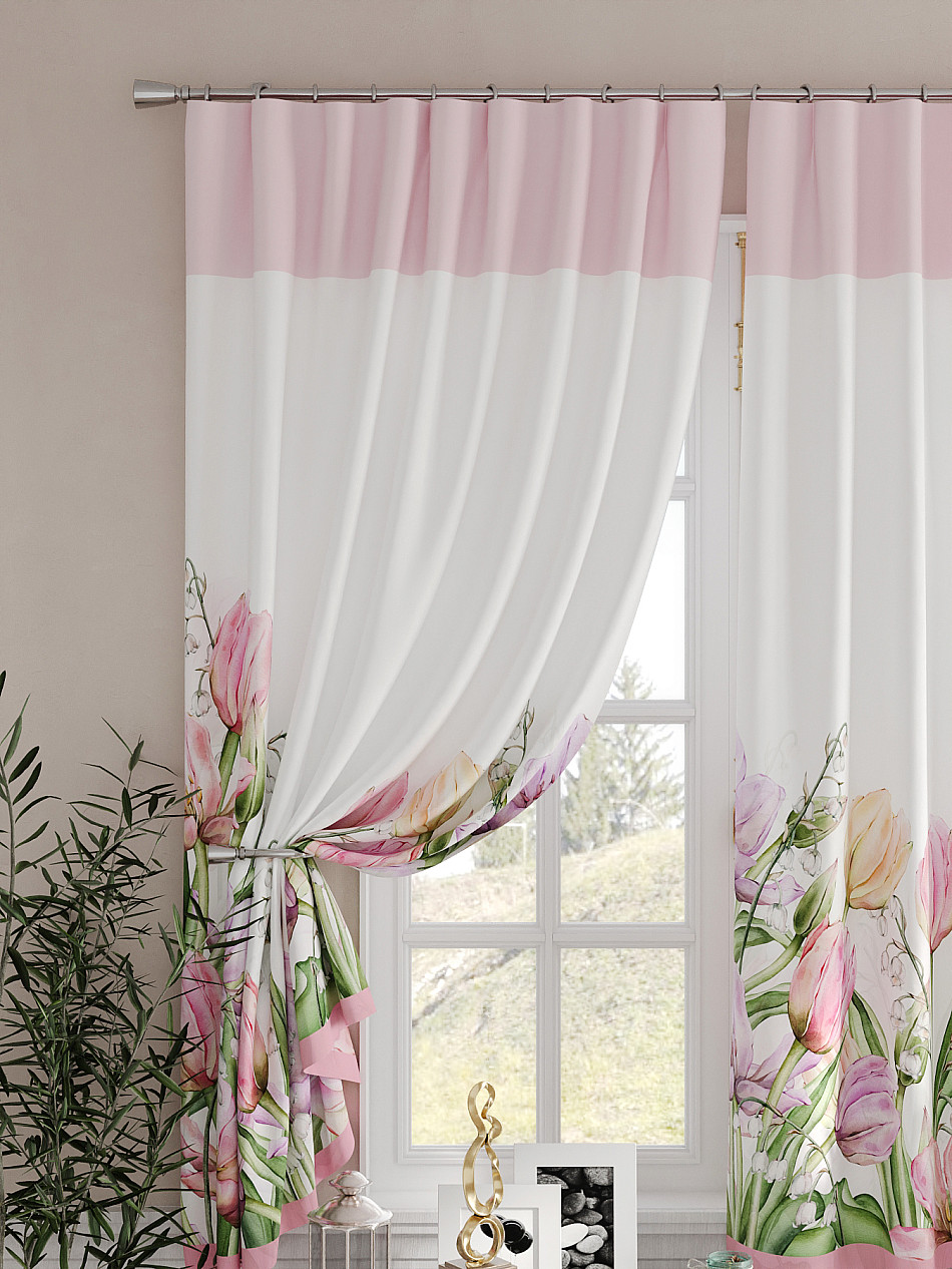 Комбинированные Прованс Фото принт ЦветочныйАксессуары для оформления штор: