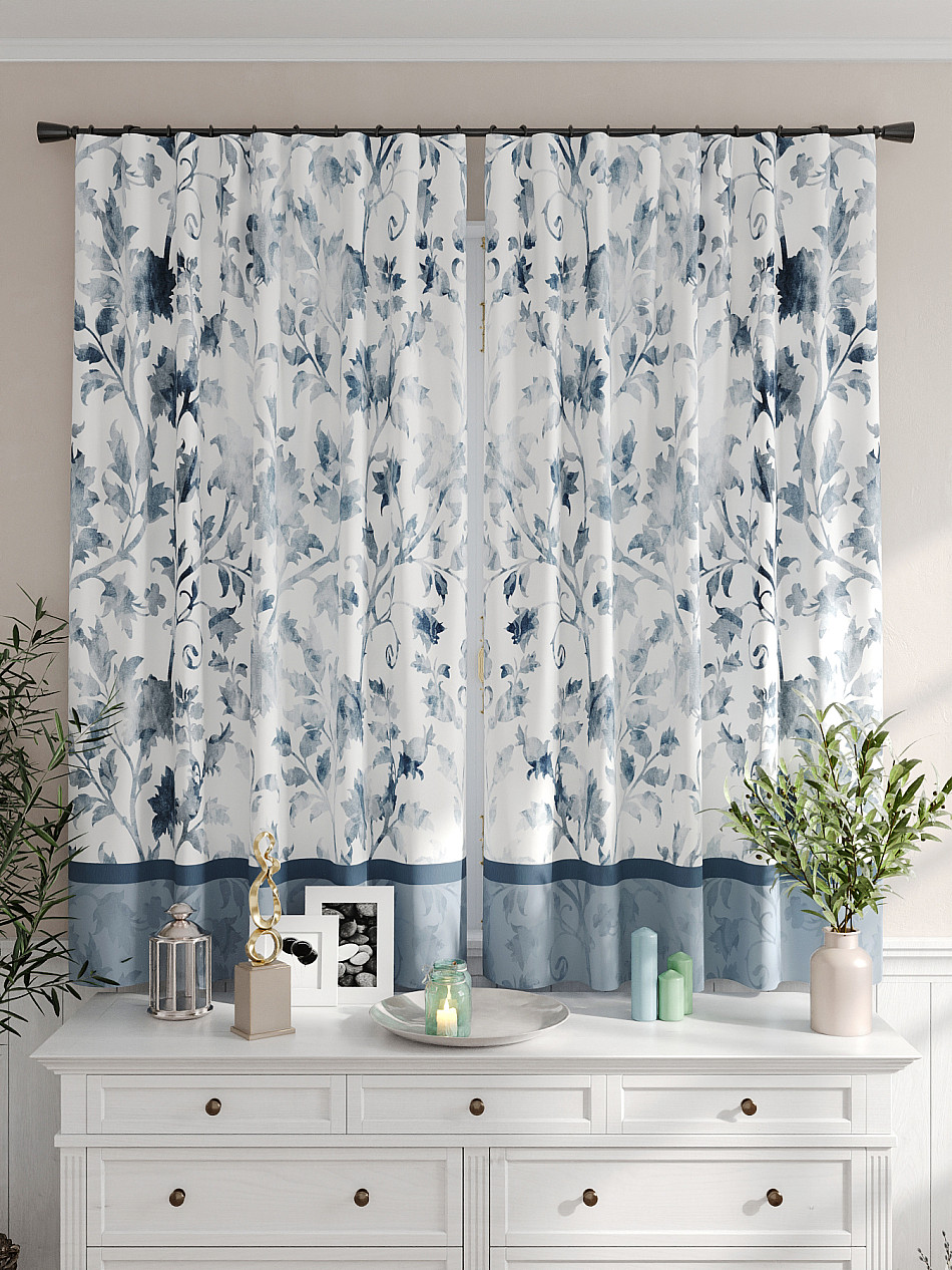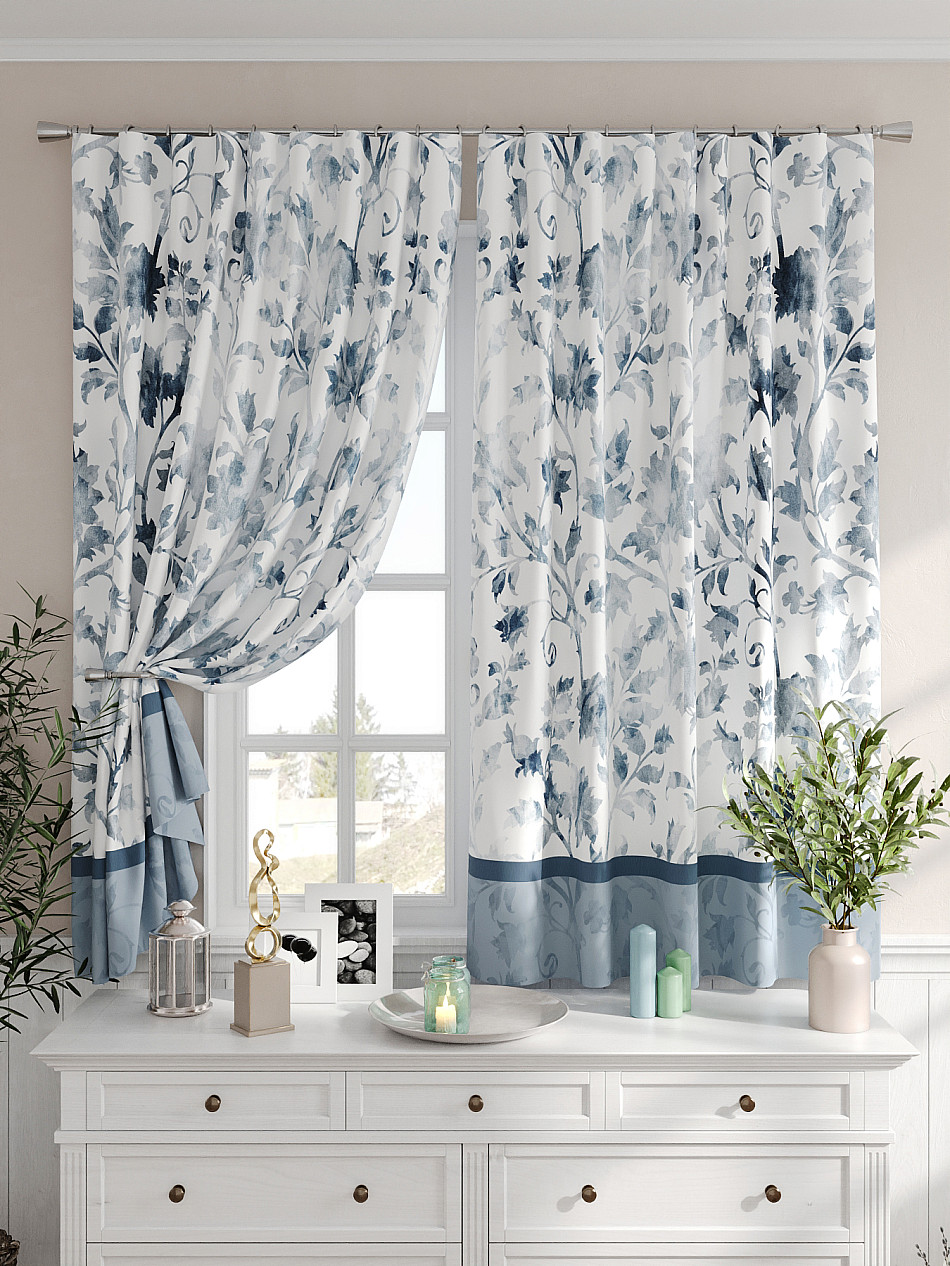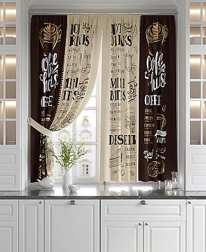 Портьеры 2 шт. Комплект штор из легкой портьерной ткани (габардин) оформлен печатным рисунком. Печатный рисунок дает широкие возможности обновить интерьер фактически не требуя ремонта за счет огромного выбора. Ткани с печатным рисунком безопасны и не содержат токсичных веществ. Не смотря на то, что материал легкий, он имеет высокую плотность, мало загрязнятся и не требует особого ухода даже после стирки, что важно для кухонных занавесок. Шторы не выцветают, не растягиваются, превосходно драпируются, образуя струящиеся складки. Прекрасное решение для создания красоты и уюта с помощью уникальных дизайнов.