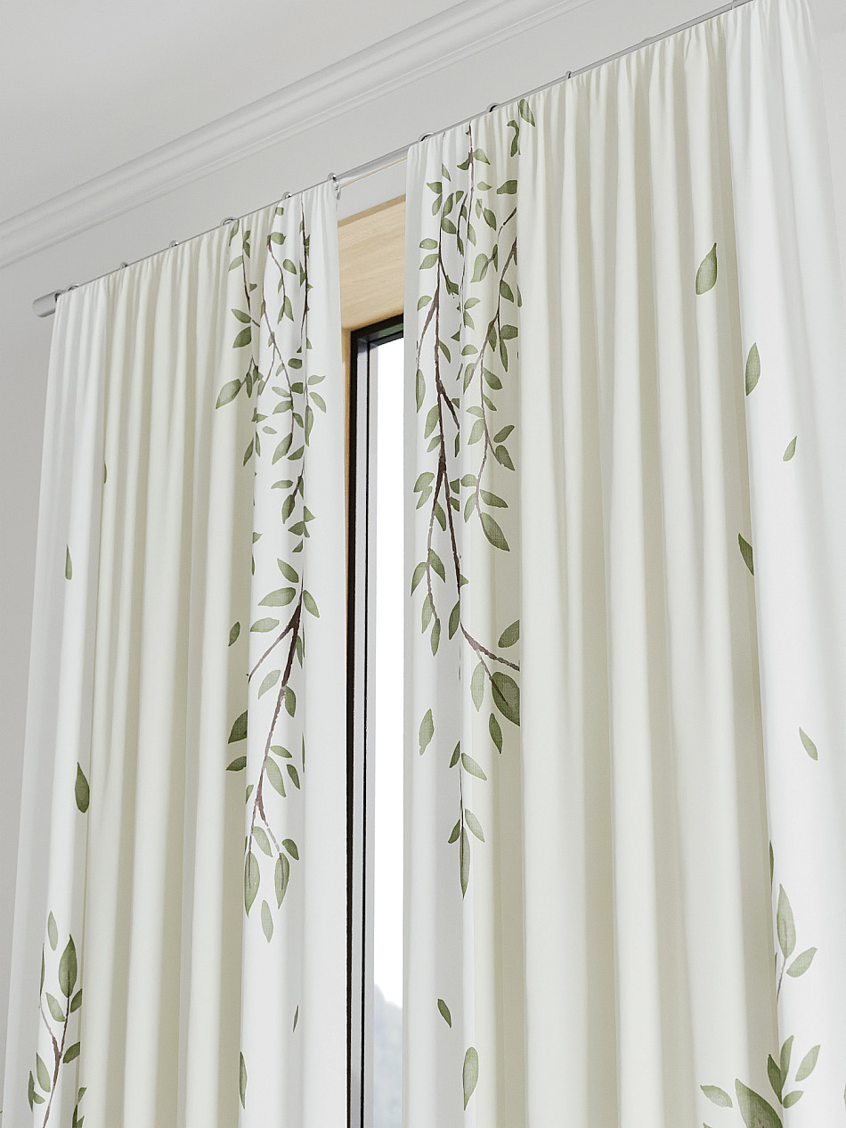 По верхнему краю портьеры пришита шторная тесьма 6 см, с ее помощью затянув узелки от кордовых нитей с обеих сторон и стянув их до нужного размера можно сформировать округлые складки, далее вставить крючки в кармашки и повесить на карниз. Обязательно проверьте кордовые нити – они должны быть надежно завязаны, в противном случае во время стягивания они могут вылететь. Шторная тесьма имеет два ряда кармашков, с их помощью можно регулировать не только длину, но и ширину. Такое крепление подходит для всех типов карнизов.