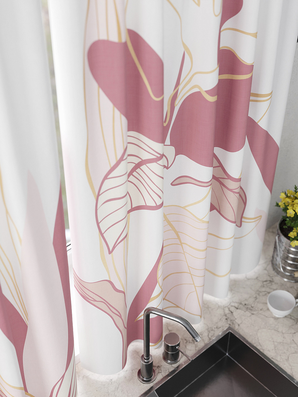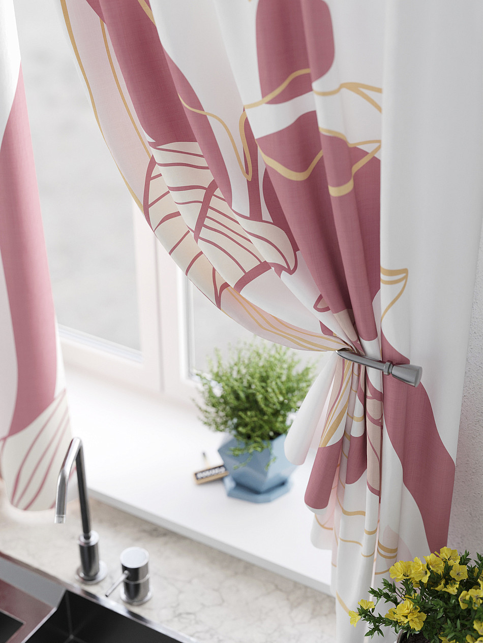 Портьеры 2 шт: Комплект штор из легкой портьерной ткани (габардин) оформлен печатным рисунком. Печатный рисунок дает широкие возможности обновить интерьер фактически нет требуя ремонта за счет огромного выбора. Ткани с печатным рисунком безопасны и не содержат токсичных веществ. Не смотря на то что, материал легкий, он имеет высокую плотность, мало загрязнятся и не требует особого ухода даже после стирки, что важно для кухонных занавесок. Шторы не выцветают, не растягиваются, превосходно драпируются, образуя струящиеся складки. Прекрасное решение для создания красоты и уюта с помощью уникальных дизайнов.