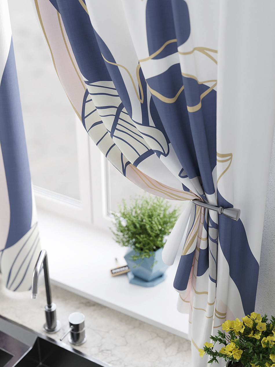 Портьеры 2 шт: Комплект штор из легкой портьерной ткани (габардин) оформлен печатным рисунком. Печатный рисунок дает широкие возможности обновить интерьер фактически нет требуя ремонта за счет огромного выбора. Ткани с печатным рисунком безопасны и не содержат токсичных веществ. Не смотря на то что, материал легкий, он имеет высокую плотность, мало загрязнятся и не требует особого ухода даже после стирки, что важно для кухонных занавесок. Шторы не выцветают, не растягиваются, превосходно драпируются, образуя струящиеся складки. Прекрасное решение для создания красоты и уюта с помощью уникальных дизайнов.