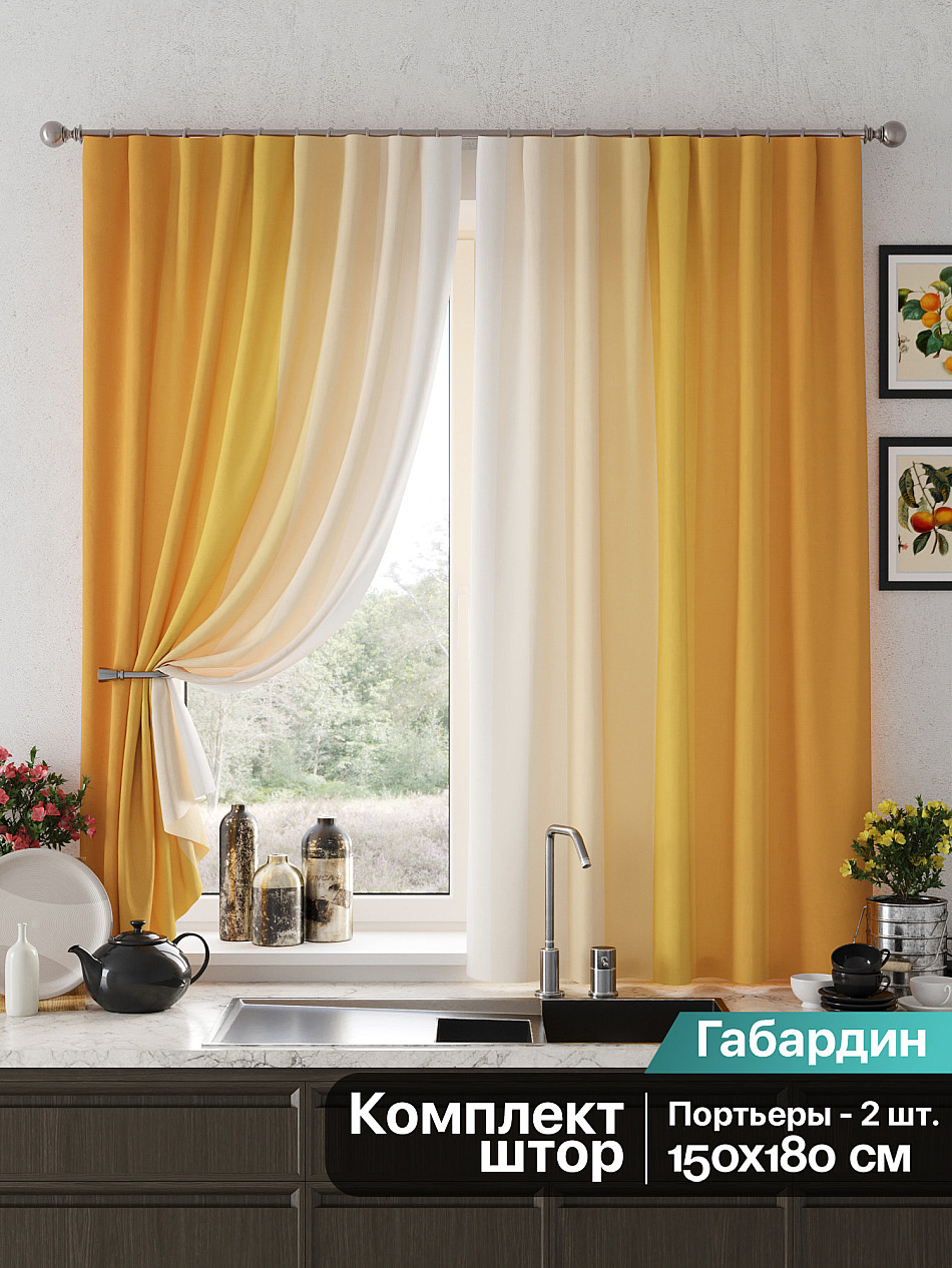 Портьеры 2 шт: Комплект штор из легкой портьерной ткани (габардин) оформлен печатным рисунком. Печатный рисунок дает широкие возможности обновить интерьер фактически нет требуя ремонта за счет огромного выбора. Ткани с печатным рисунком безопасны и не содержат токсичных веществ. Не смотря на то что, материал легкий, он имеет высокую плотность, мало загрязнятся и не требует особого ухода даже после стирки, что важно для кухонных занавесок. Шторы не выцветают, не растягиваются, превосходно драпируются, образуя струящиеся складки. Прекрасное решение для создания красоты и уюта с помощью уникальных дизайнов.