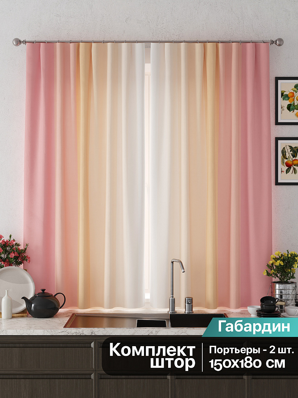 Портьеры 2 шт: Комплект штор из легкой портьерной ткани (габардин) оформлен печатным рисунком. Печатный рисунок дает широкие возможности обновить интерьер фактически нет требуя ремонта за счет огромного выбора. Ткани с печатным рисунком безопасны и не содержат токсичных веществ. Не смотря на то что, материал легкий, он имеет высокую плотность, мало загрязнятся и не требует особого ухода даже после стирки, что важно для кухонных занавесок. Шторы не выцветают, не растягиваются, превосходно драпируются, образуя струящиеся складки. Прекрасное решение для создания красоты и уюта с помощью уникальных дизайнов.