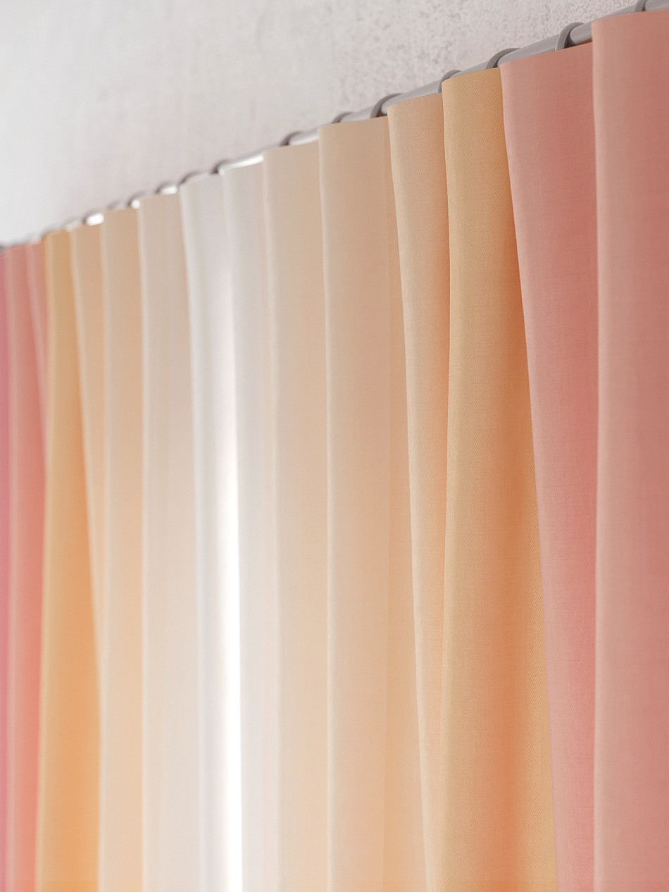 По верхнему краю портьер пришита шторная тесьма 6 см, с ее помощью затянув узелки от кордовых нитей с обеих сторон и стянув их до нужного размера можно сформировать округлые складки, далее вставить крючки в кармашки и повесить на карниз. Обязательно проверьте кордовые нити – они должны быть надежно завязаны, в противном случае во время стягивания они могут вылететь. Шторная тесьма имеет два ряда кармашков, с их помощью можно регулировать не только длину, но и ширину. Такое крепление подходит для всех типов карнизов.