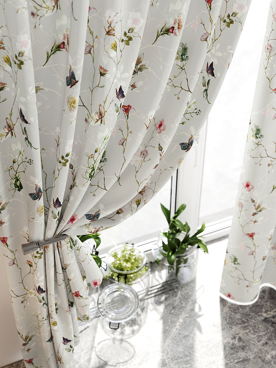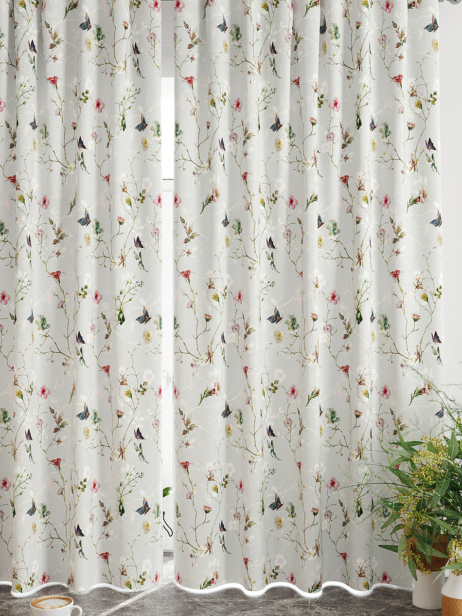 Комплект штор из легкой портьерной ткани (габардин) оформлен печатным рисунком. Печатный рисунок дает широкие возможности обновить интерьер фактически нет требуя ремонта за счет огромного выбора. Ткани с печатным рисунком безопасны и не содержат токсичных веществ. Не смотря на то что, материал легкий, он имеет высокую плотность, мало загрязнятся и не требует особого ухода даже после стирки, что важно для кухонных занавесок. Шторы не выцветают, не растягиваются, превосходно драпируются, образуя струящиеся складки. Прекрасное решение для создания красоты и уюта с помощью уникальных дизайнов.