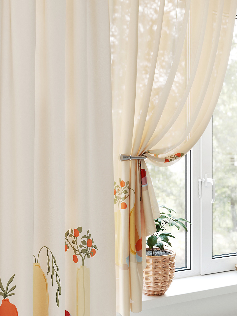 Портьера 1 шт. Подхват - доп.услуга. Комплект для интерьера с балконной дверью, состоит из легкой портьеры для двери и тюли для окна. Оригинальная ассиметричная конструкция оживит любое помещение. Красивая одиночная портьера украсит балконный проём и обеспечит удобный доступ к двери. Легкая вуаль с пышными складками создаст воздушный образ окна и защитит от прямых солнечных лучей, мягко рассеивая свет.