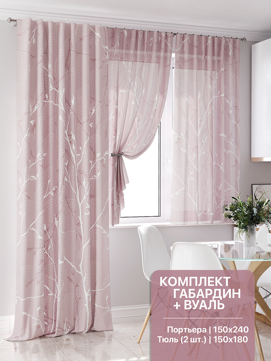 Портьера 150х240 см — 1 шт., вуаль 150х180 см — 2 шт. ( Уменьшить высоту ) Подробнее