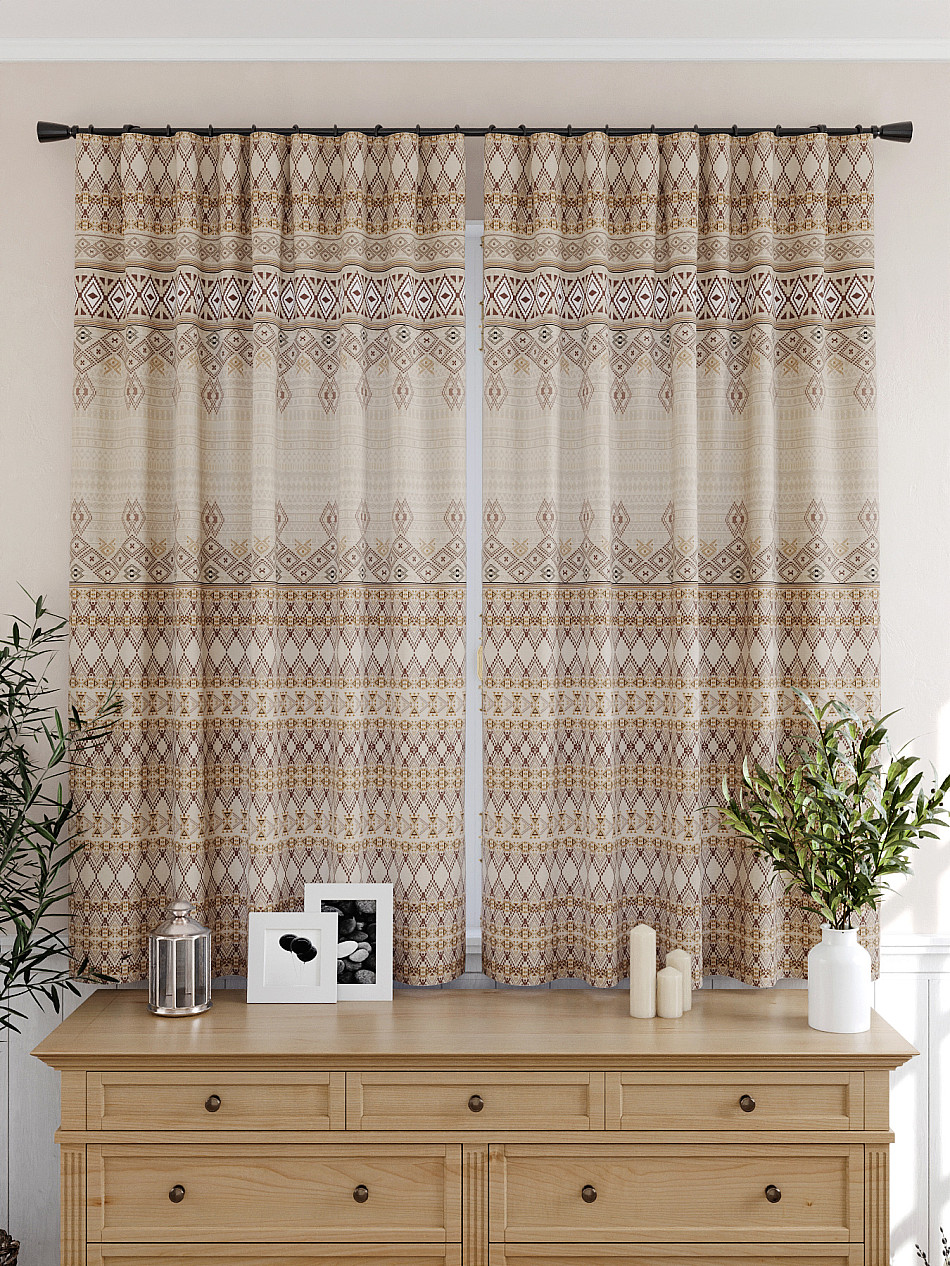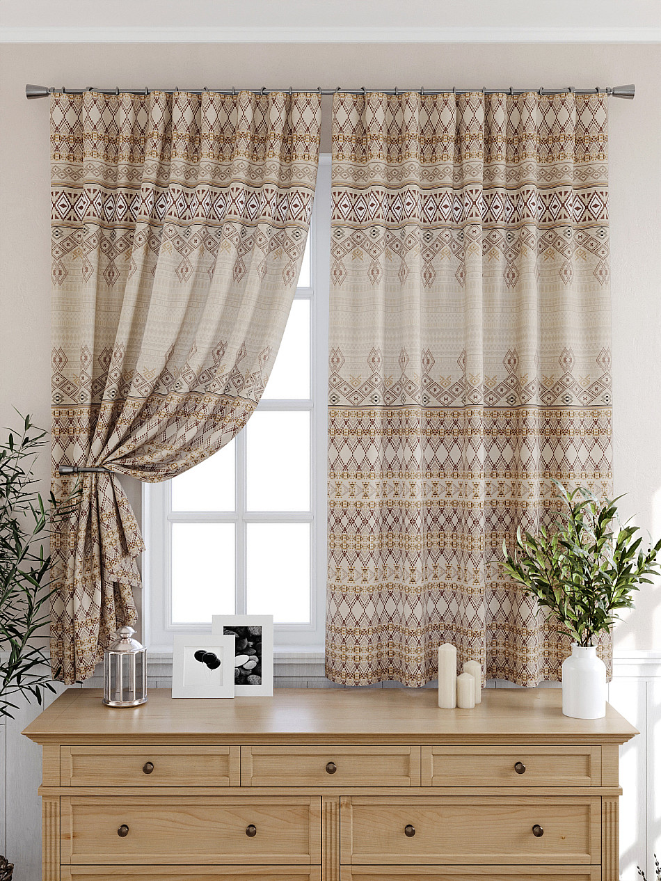 Портьеры 2 шт: Комплект штор из легкой портьерной ткани (габардин) оформлен печатным рисунком. Печатный рисунок дает широкие возможности обновить интерьер фактически нет требуя ремонта за счет огромного выбора. Ткани с печатным рисунком безопасны и не содержат токсичных веществ. Не смотря на то что, материал легкий, он имеет высокую плотность, мало загрязнятся и не требует особого ухода даже после стирки, что важно для кухонных занавесок. Шторы не выцветают, не растягиваются, превосходно драпируются, образуя струящиеся складки. Прекрасное решение для создания красоты и уюта с помощью уникальных дизайнов.