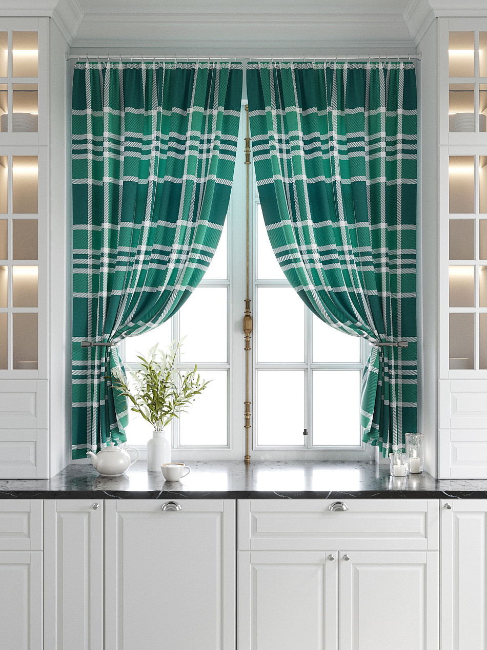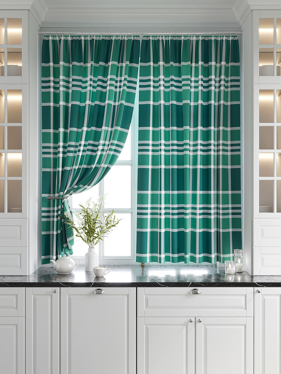 Комплект штор из легкой портьерной ткани (габардин) оформлен печатным рисунком. Печатный рисунок дает широкие возможности обновить интерьер фактически нет требуя ремонта за счет огромного выбора. Ткани с печатным рисунком безопасны и не содержат токсичных веществ. Не смотря на то что, материал легкий, он имеет высокую плотность, мало загрязнятся и не требует особого ухода даже после стирки, что важно для кухонных занавесок. Шторы не выцветают, не растягиваются, превосходно драпируются, образуя струящиеся складки. Прекрасное решение для создания красоты и уюта с помощью уникальных дизайнов.
