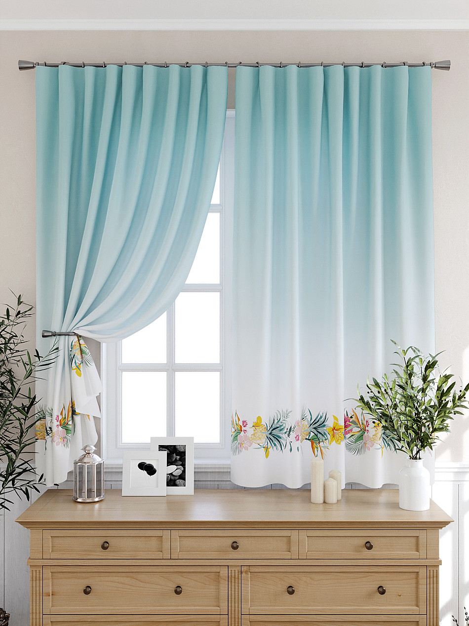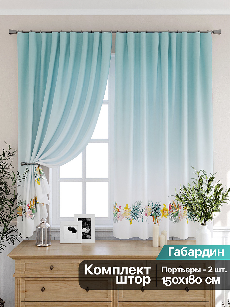 Портьеры 2 шт: Комплект штор из легкой портьерной ткани (габардин) оформлен печатным рисунком. Печатный рисунок дает широкие возможности обновить интерьер фактически нет требуя ремонта за счет огромного выбора. Ткани с печатным рисунком безопасны и не содержат токсичных веществ. Не смотря на то что, материал легкий, он имеет высокую плотность, мало загрязнятся и не требует особого ухода даже после стирки, что важно для кухонных занавесок. Шторы не выцветают, не растягиваются, превосходно драпируются, образуя струящиеся складки. Прекрасное решение для создания красоты и уюта с помощью уникальных дизайнов.