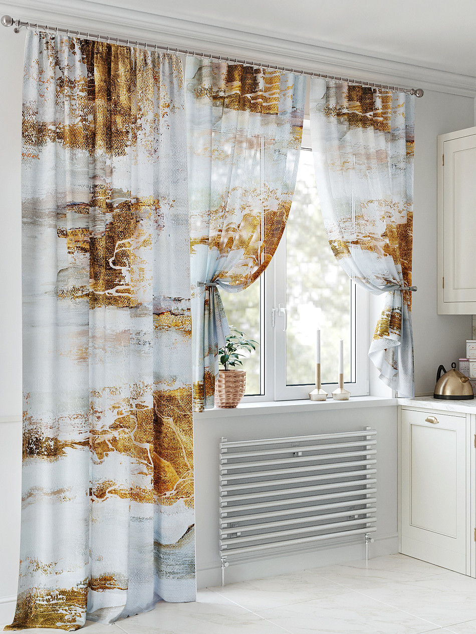 - Состав комплекта Портьера 150х250 см — 1 шт., вуаль 150х180 см — 2 шт.