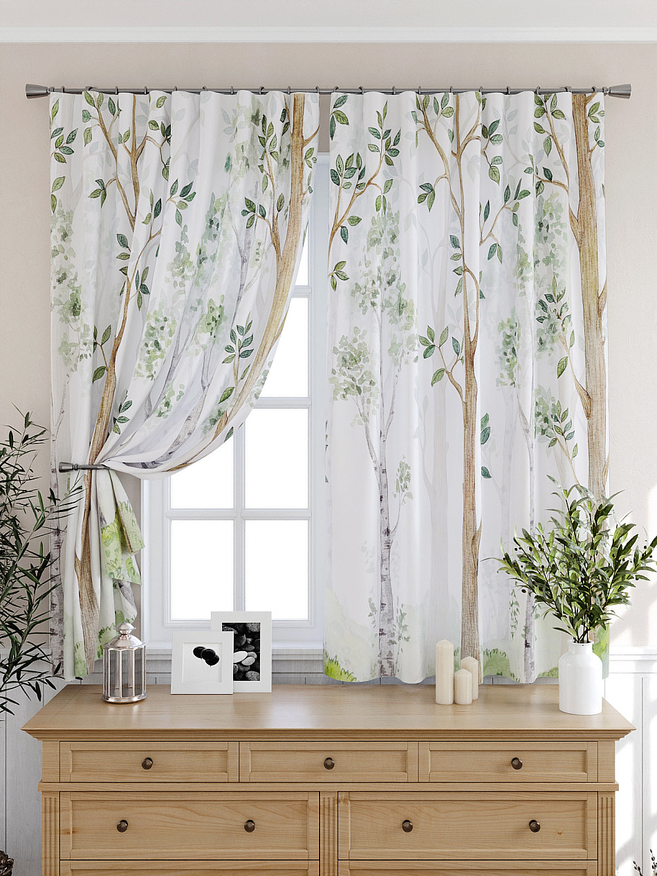 Портьеры 2 шт: Комплект штор из легкой портьерной ткани (габардин) оформлен печатным рисунком. Печатный рисунок дает широкие возможности обновить интерьер фактически нет требуя ремонта за счет огромного выбора. Ткани с печатным рисунком безопасны и не содержат токсичных веществ. Не смотря на то что, материал легкий, он имеет высокую плотность, мало загрязнятся и не требует особого ухода даже после стирки, что важно для кухонных занавесок. Шторы не выцветают, не растягиваются, превосходно драпируются, образуя струящиеся складки. Прекрасное решение для создания красоты и уюта с помощью уникальных дизайнов.
