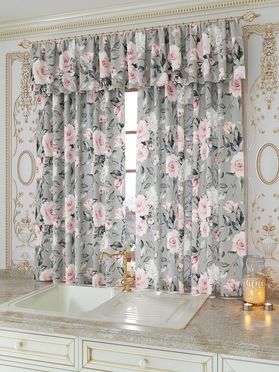 Ламбрекен: легкая основа (Габардин). Ширина — 300 см, высота — 40 см, крепление — шторная лента (крючки).