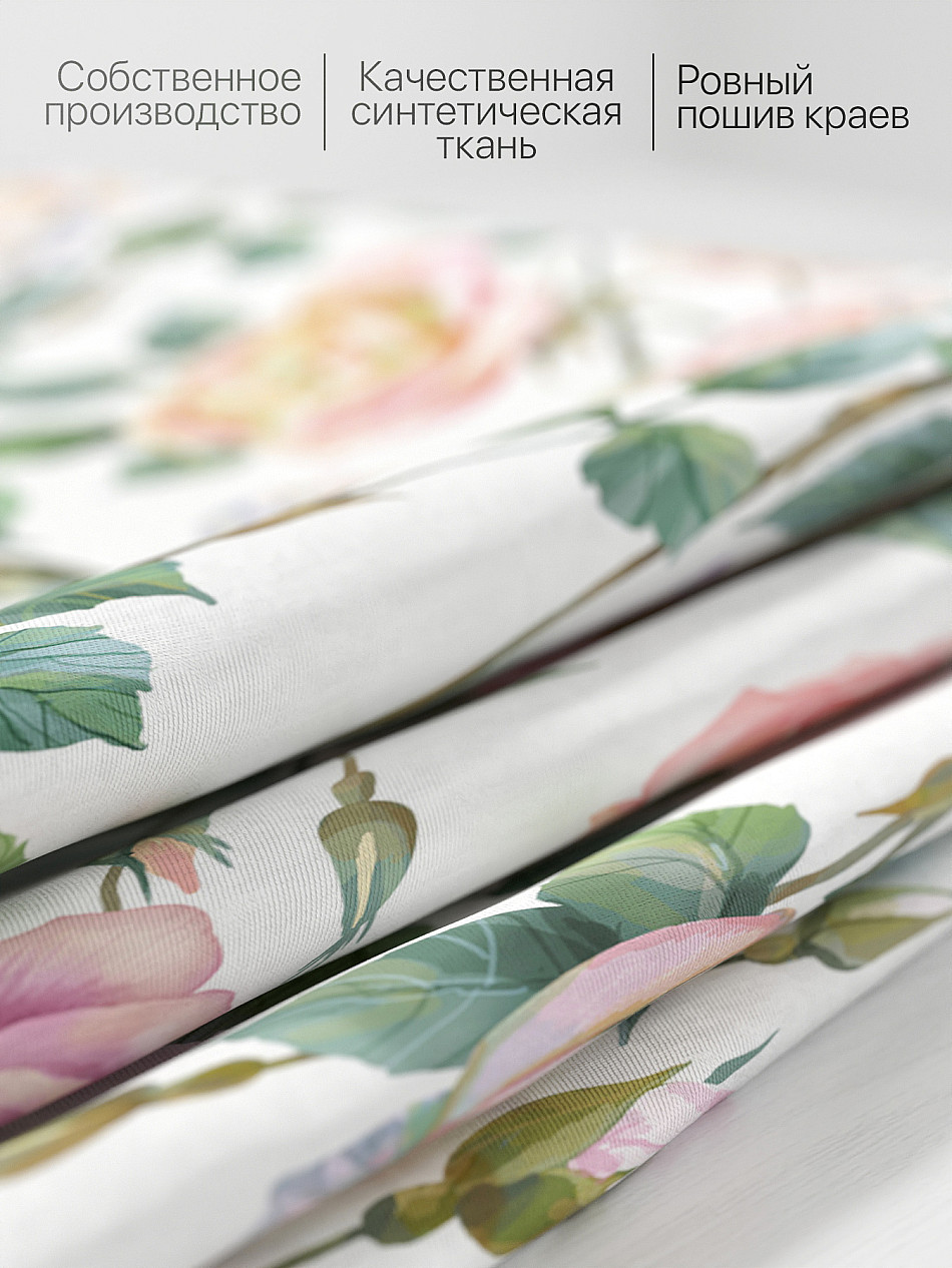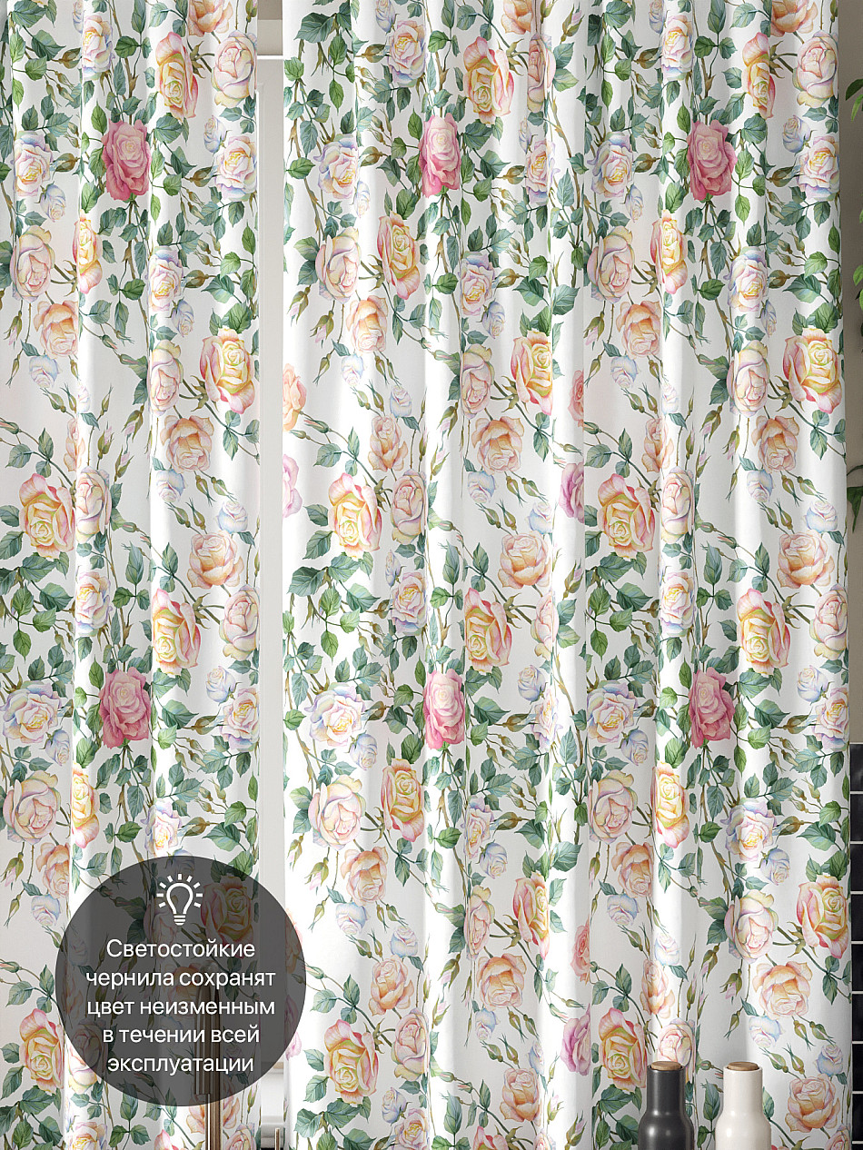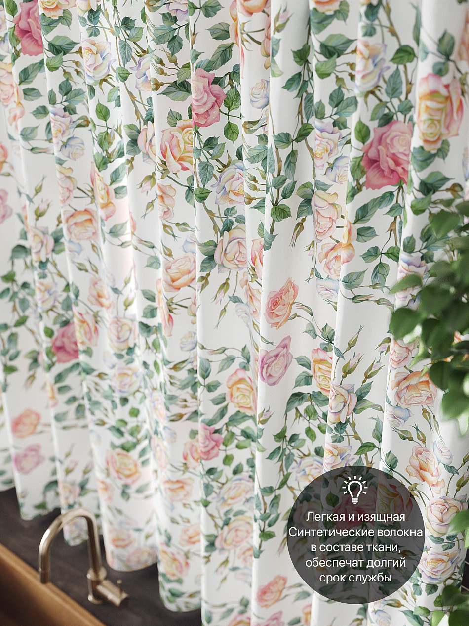 Комплект штор из легкой портьерной ткани (габардин) оформлен печатным рисунком. Печатный рисунок дает широкие возможности обновить интерьер фактически нет требуя ремонта за счет огромного выбора. Ткани с печатным рисунком безопасны и не содержат токсичных веществ. Не смотря на то что, материал легкий, он имеет высокую плотность, мало загрязнятся и не требует особого ухода даже после стирки, что важно для кухонных занавесок. Шторы не выцветают, не растягиваются, превосходно драпируются, образуя струящиеся складки. Прекрасное решение для создания красоты и уюта с помощью уникальных дизайнов.