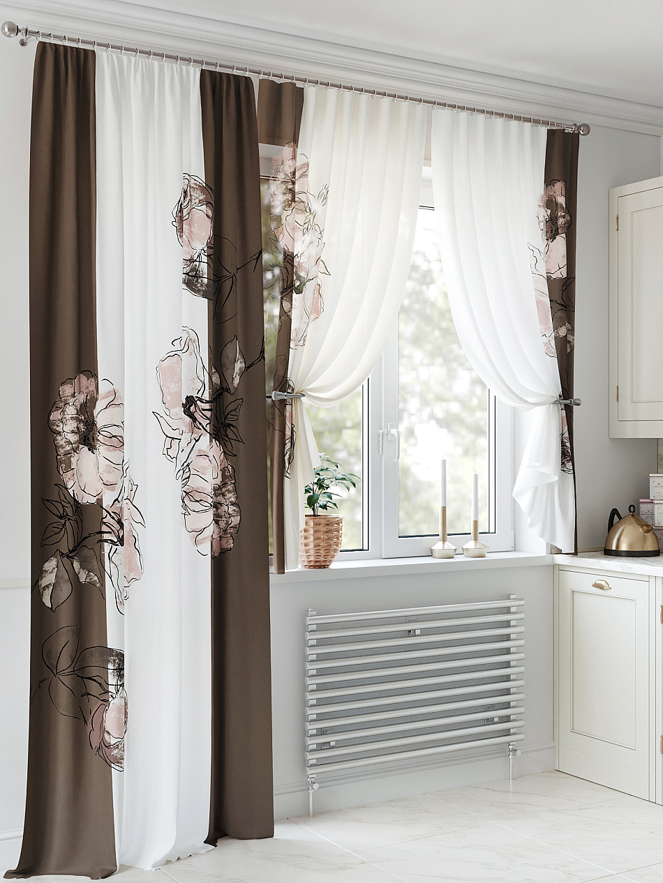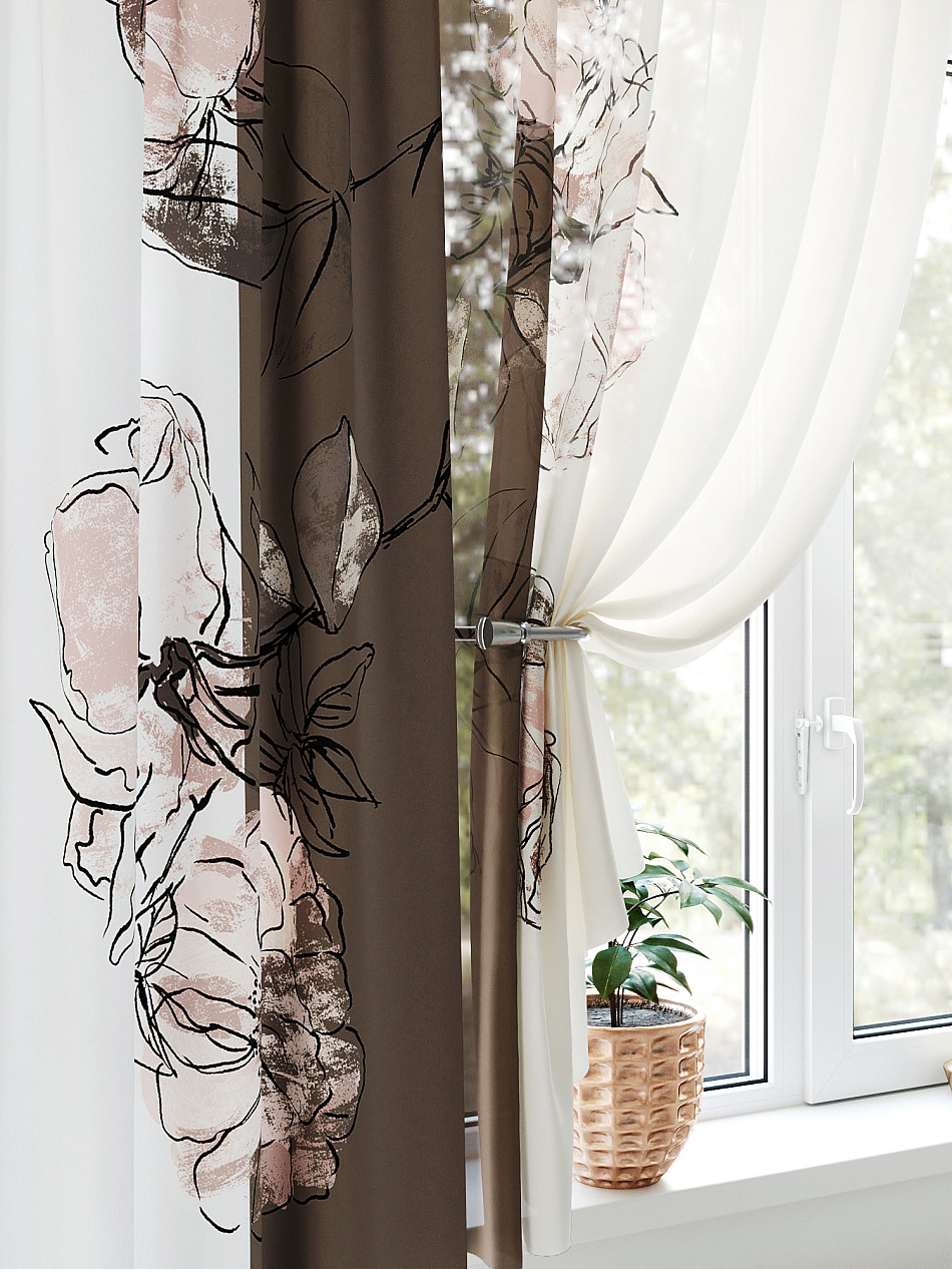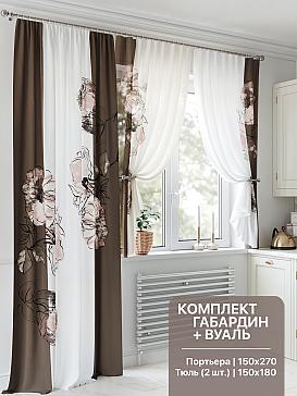 Портьера 150х270 см — 1 шт., вуаль 150х180 см — 2 шт. ( Уменьшить высоту ) Крепление: шторная лента (крючки), кулиска Подробнее