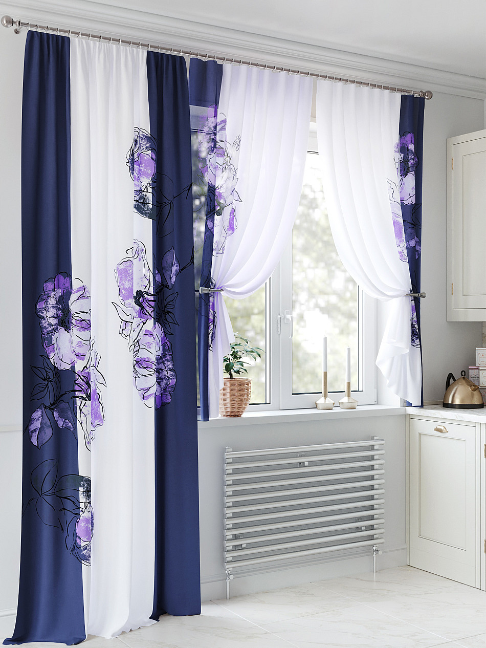 Портьера 1 шт. Подхват - доп.услуга. Комплект для интерьера с балконной дверью, состоит из легкой портьеры для двери и тюли для окна. Оригинальная ассиметричная конструкция оживит любое помещение. Красивая одиночная портьера украсит балконный проём и обеспечит удобный доступ к двери. Легкая вуаль с пышными складками создаст воздушный образ окна и защитит от прямых солнечных лучей, мягко рассеивая свет.