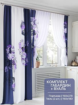 Портьера 150х270 см — 1 шт., вуаль 150х180 см — 2 шт. ( Уменьшить высоту ) Крепление: шторная лента (крючки), кулиска Подробнее