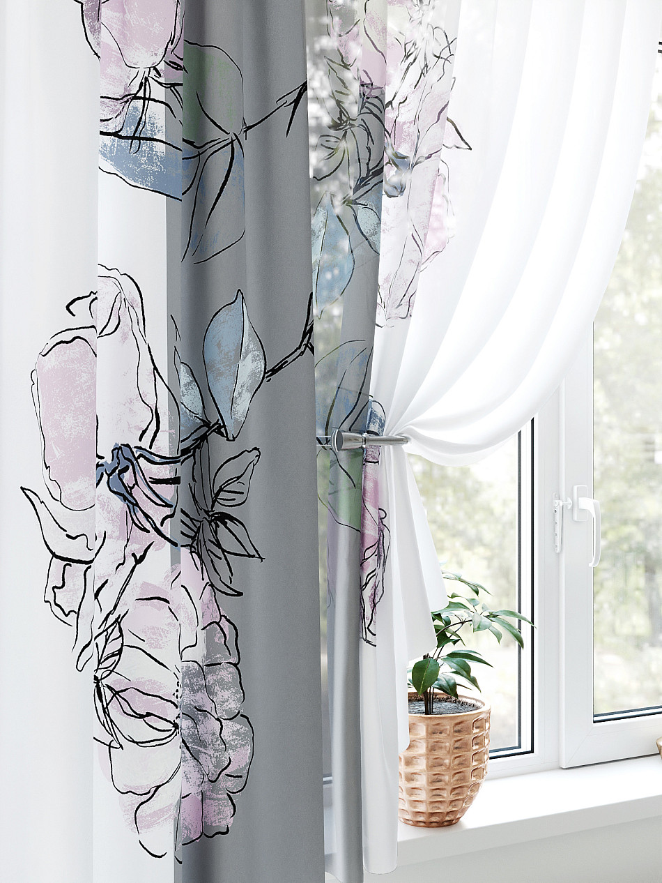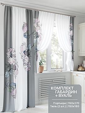 - Состав комплекта Портьера 150х270 см — 1 шт., вуаль 150х180 см — 2 шт.