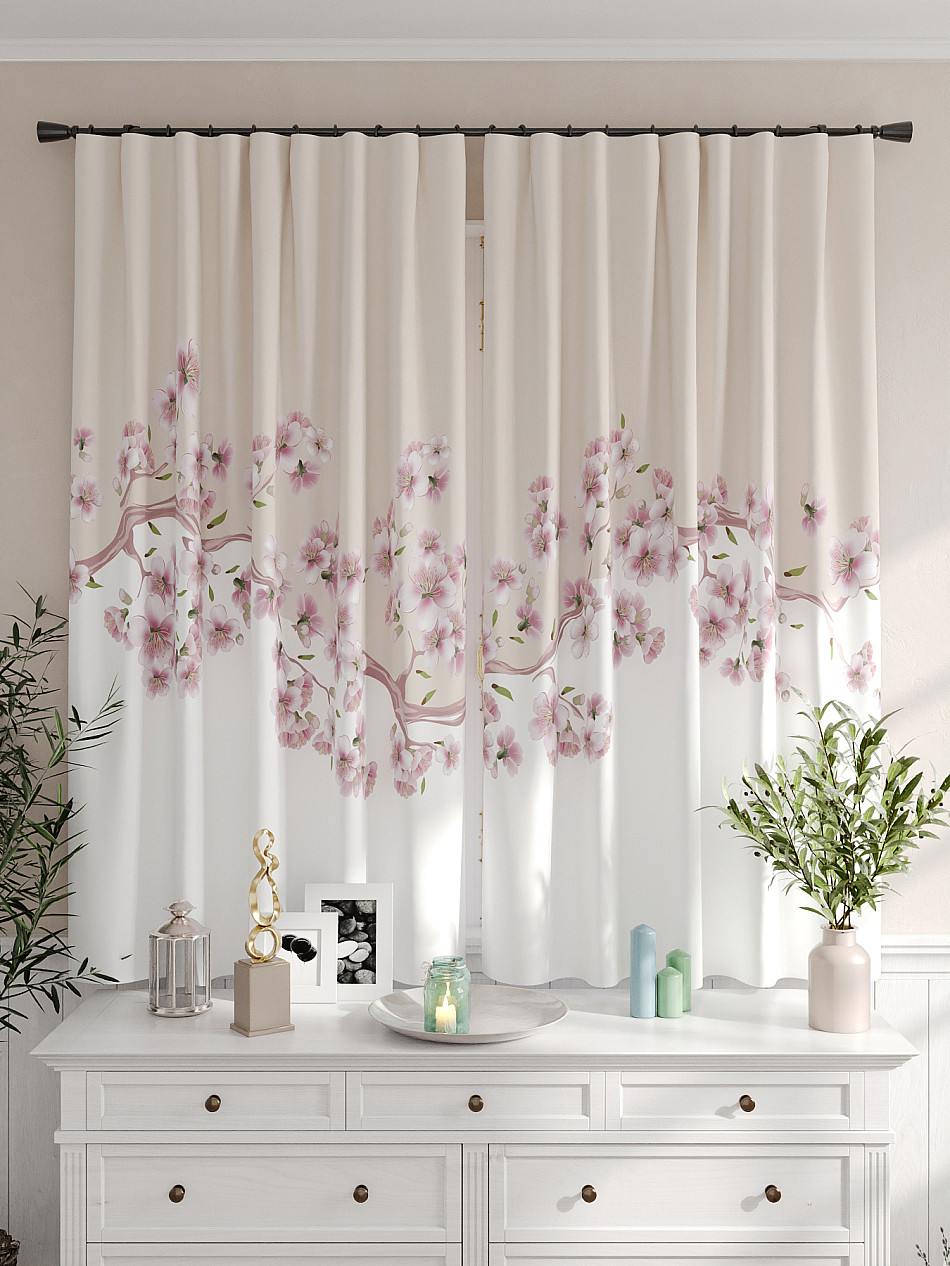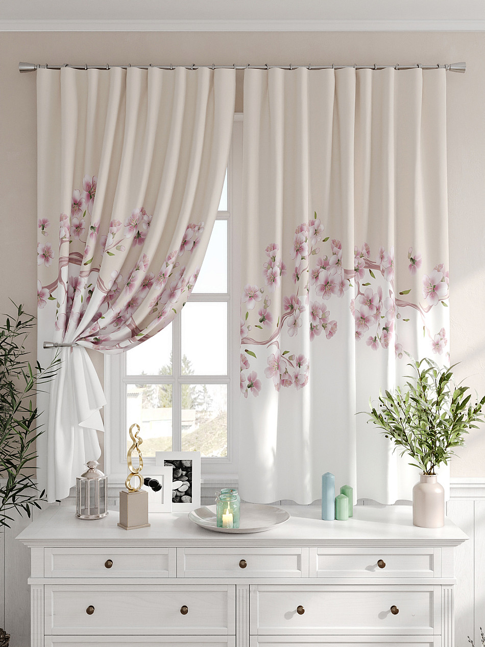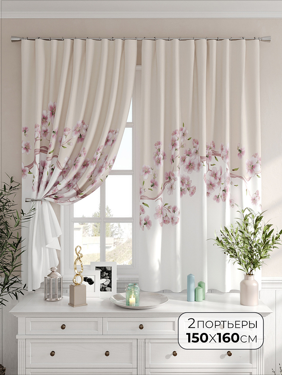 Портьеры 2 шт. Комплект штор из легкой портьерной ткани (габардин) оформлен печатным рисунком. Печатный рисунок дает широкие возможности обновить интерьер фактически не требуя ремонта за счет огромного выбора. Ткани с печатным рисунком безопасны и не содержат токсичных веществ. Не смотря на то, что материал легкий, он имеет высокую плотность, мало загрязнятся и не требует особого ухода даже после стирки, что важно для кухонных занавесок. Шторы не выцветают, не растягиваются, превосходно драпируются, образуя струящиеся складки. Прекрасное решение для создания красоты и уюта с помощью уникальных дизайнов.