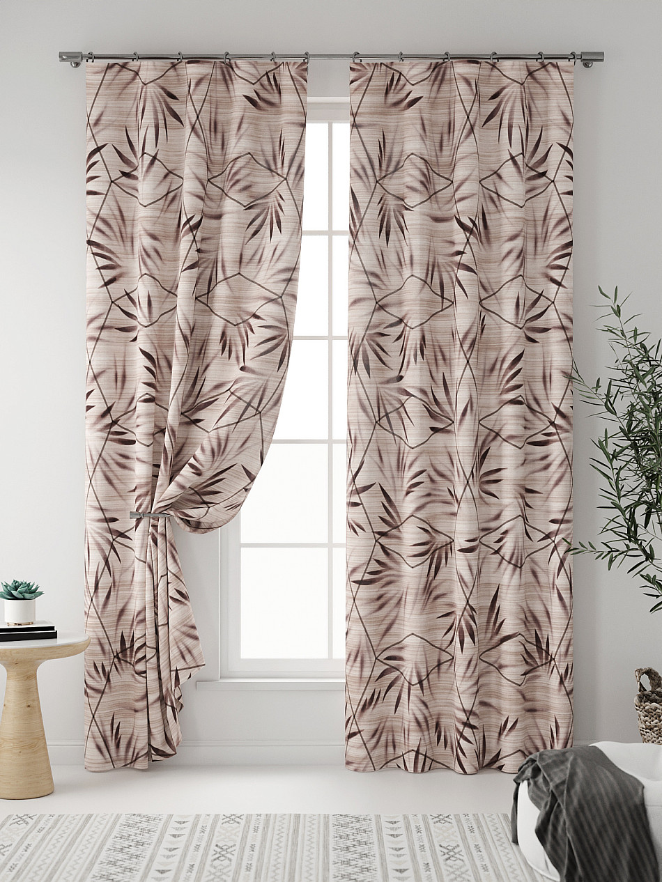 Комплект штор из легкой портьерной ткани (габардин) оформлен печатным рисунком. Печатный рисунок дает широкие возможности обновить интерьер фактически нет требуя ремонта за счет огромного выбора. Ткани с печатным рисунком безопасны и не содержат токсичных веществ. Не смотря на то что, материал легкий, он имеет высокую плотность, мало загрязнятся и не требует особого ухода даже после стирки, что важно для кухонных занавесок. Шторы не выцветают, не растягиваются, превосходно драпируются, образуя струящиеся складки. Прекрасное решение для создания красоты и уюта с помощью уникальных дизайнов.