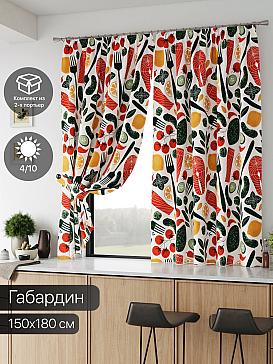 Комплект штор из легкой портьерной ткани (габардин) оформлен печатным рисунком. Печатный рисунок дает широкие возможности обновить интерьер фактически нет требуя ремонта за счет огромного выбора. Ткани с печатным рисунком безопасны и не содержат токсичных веществ. Не смотря на то что, материал легкий, он имеет высокую плотность, мало загрязнятся и не требует особого ухода даже после стирки, что важно для кухонных занавесок. Шторы не выцветают, не растягиваются, превосходно драпируются, образуя струящиеся складки. Прекрасное решение для создания красоты и уюта с помощью уникальных дизайнов.