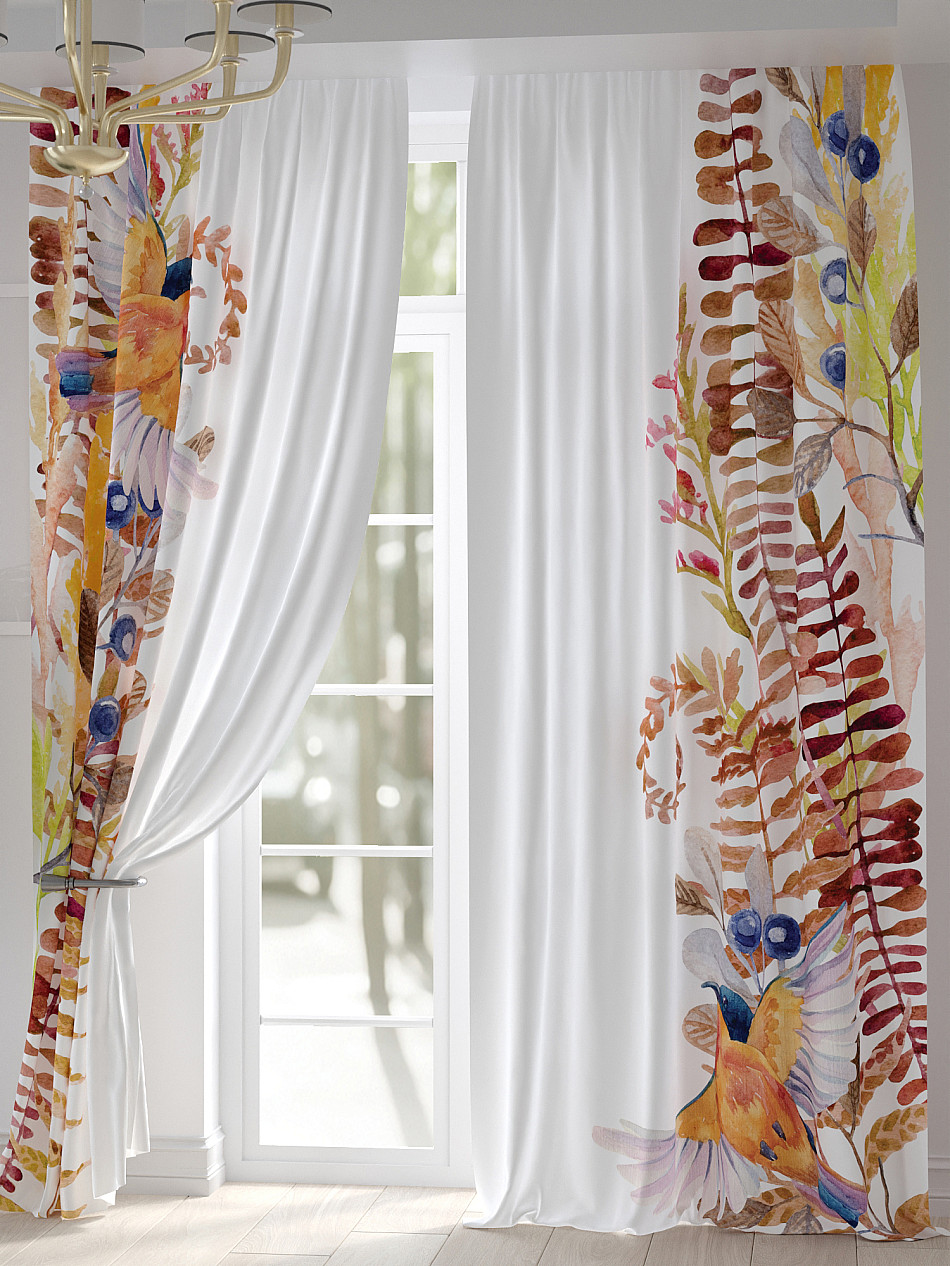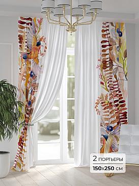 Портьера 2 шт. Подхват - доп.услуга. Комплект штор из легкой портьерной ткани (габардин) оформлен печатным рисунком. Печатный рисунок дает широкие возможности обновить интерьер фактически нет требуя ремонта за счет огромного выбора. Ткани с печатным рисунком безопасны и не содержат токсичных веществ. Не смотря на то что, материал легкий, он имеет высокую плотность, мало загрязнятся и не требует особого ухода даже после стирки, что важно для кухонных занавесок. Шторы не выцветают, не растягиваются, превосходно драпируются, образуя струящиеся складки. Прекрасное решение для создания красоты и уюта с помощью уникальных дизайнов.
