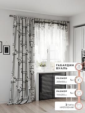 Портьера 150х260 см — 1 шт., тюль 200х150 см — 1 шт. ( Изменить высоту) Крепление: шторная лента (крючки), кулиска Подробнее
