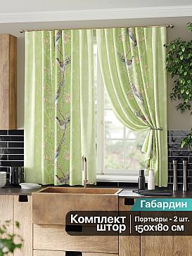 Комплект штор из легкой портьерной ткани (габардин) оформлен печатным рисунком. Печатный рисунок дает широкие возможности обновить интерьер фактически нет требуя ремонта за счет огромного выбора. Ткани с печатным рисунком безопасны и не содержат токсичных веществ. Не смотря на то что, материал легкий, он имеет высокую плотность, мало загрязнятся и не требует особого ухода даже после стирки, что важно для кухонных занавесок. Шторы не выцветают, не растягиваются, превосходно драпируются, образуя струящиеся складки. Прекрасное решение для создания красоты и уюта с помощью уникальных дизайнов.