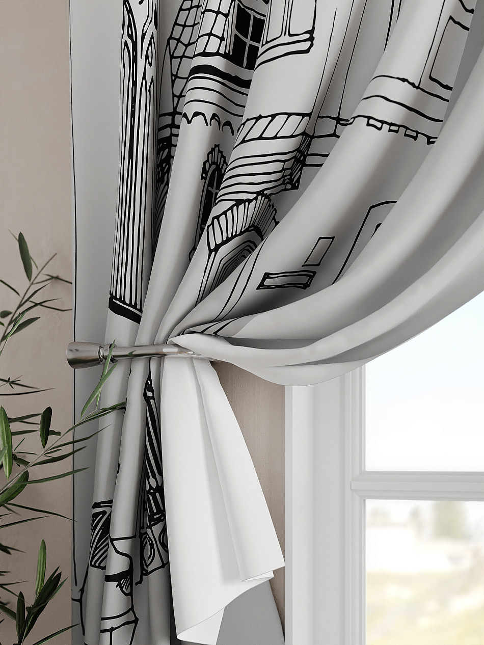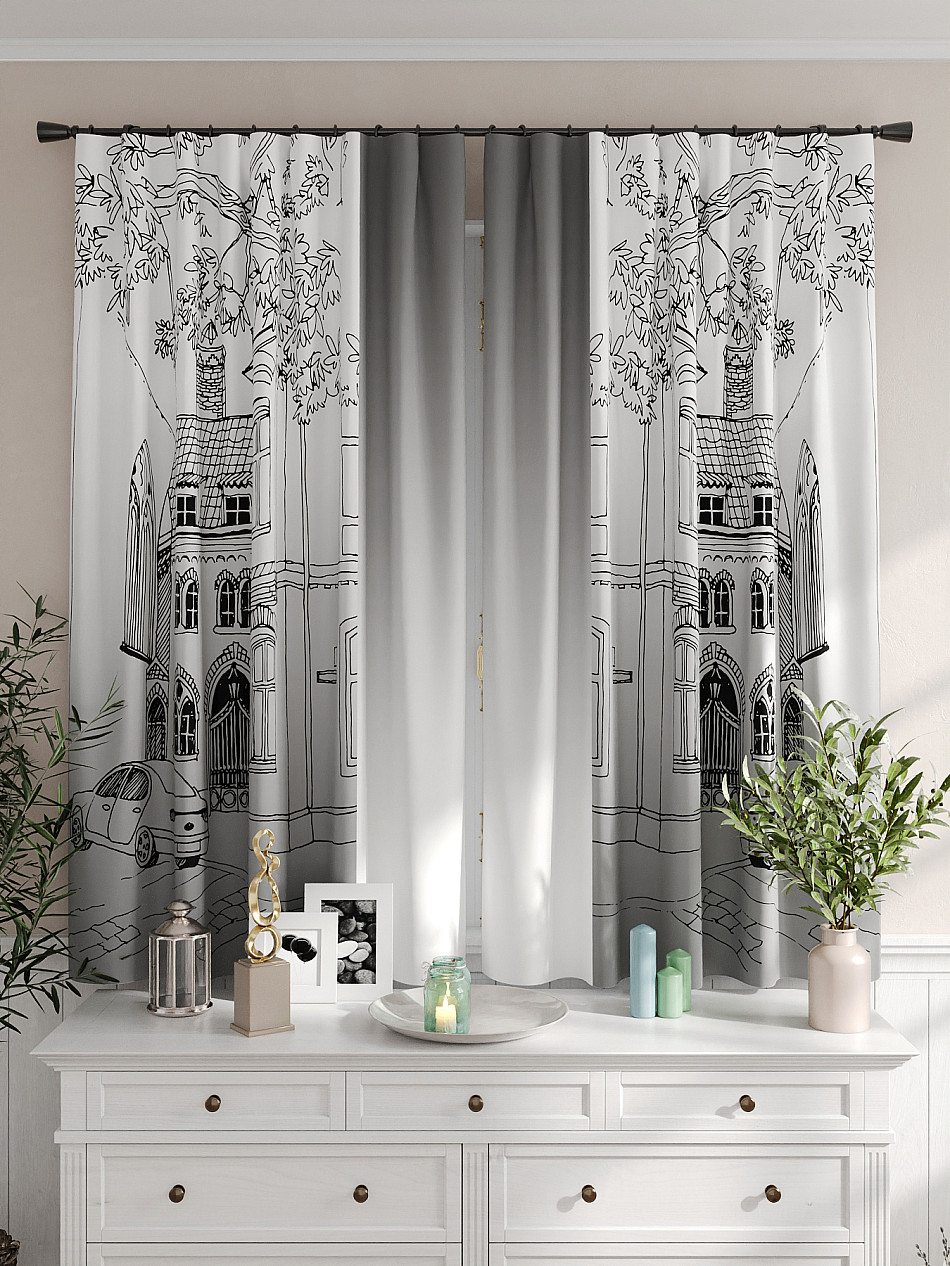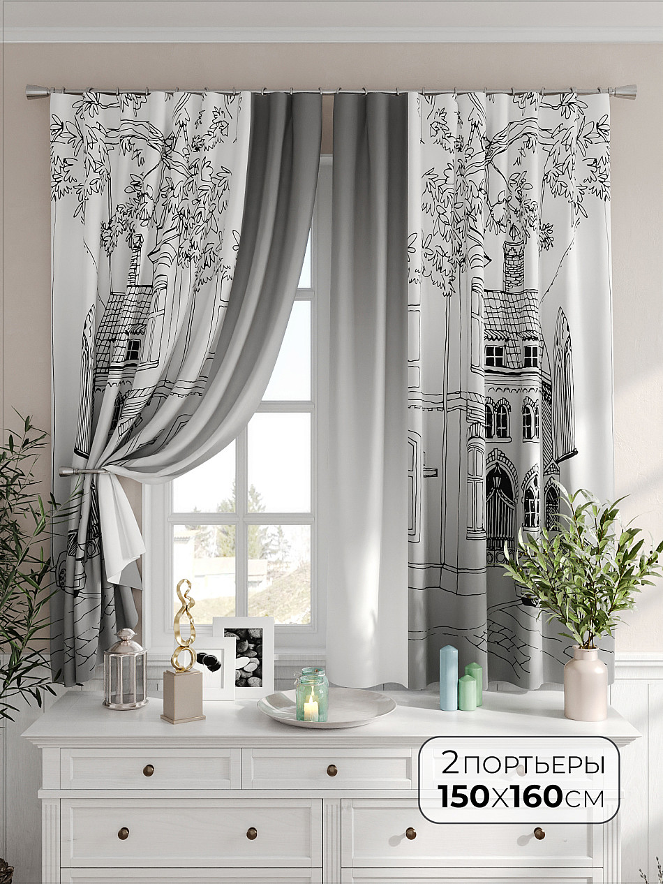 Портьеры 2 шт. Комплект штор из легкой портьерной ткани (габардин) оформлен печатным рисунком. Печатный рисунок дает широкие возможности обновить интерьер фактически не требуя ремонта за счет огромного выбора. Ткани с печатным рисунком безопасны и не содержат токсичных веществ. Не смотря на то, что материал легкий, он имеет высокую плотность, мало загрязнятся и не требует особого ухода даже после стирки, что важно для кухонных занавесок. Шторы не выцветают, не растягиваются, превосходно драпируются, образуя струящиеся складки. Прекрасное решение для создания красоты и уюта с помощью уникальных дизайнов.