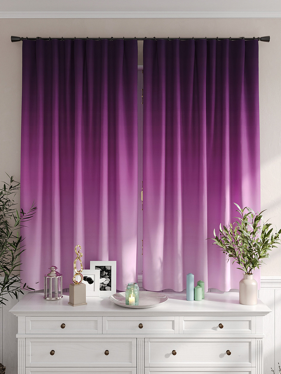 Портьеры 2 шт. Комплект штор из легкой портьерной ткани (габардин) оформлен печатным рисунком. Печатный рисунок дает широкие возможности обновить интерьер фактически не требуя ремонта за счет огромного выбора. Ткани с печатным рисунком безопасны и не содержат токсичных веществ. Не смотря на то, что материал легкий, он имеет высокую плотность, мало загрязнятся и не требует особого ухода даже после стирки, что важно для кухонных занавесок. Шторы не выцветают, не растягиваются, превосходно драпируются, образуя струящиеся складки. Прекрасное решение для создания красоты и уюта с помощью уникальных дизайнов.
