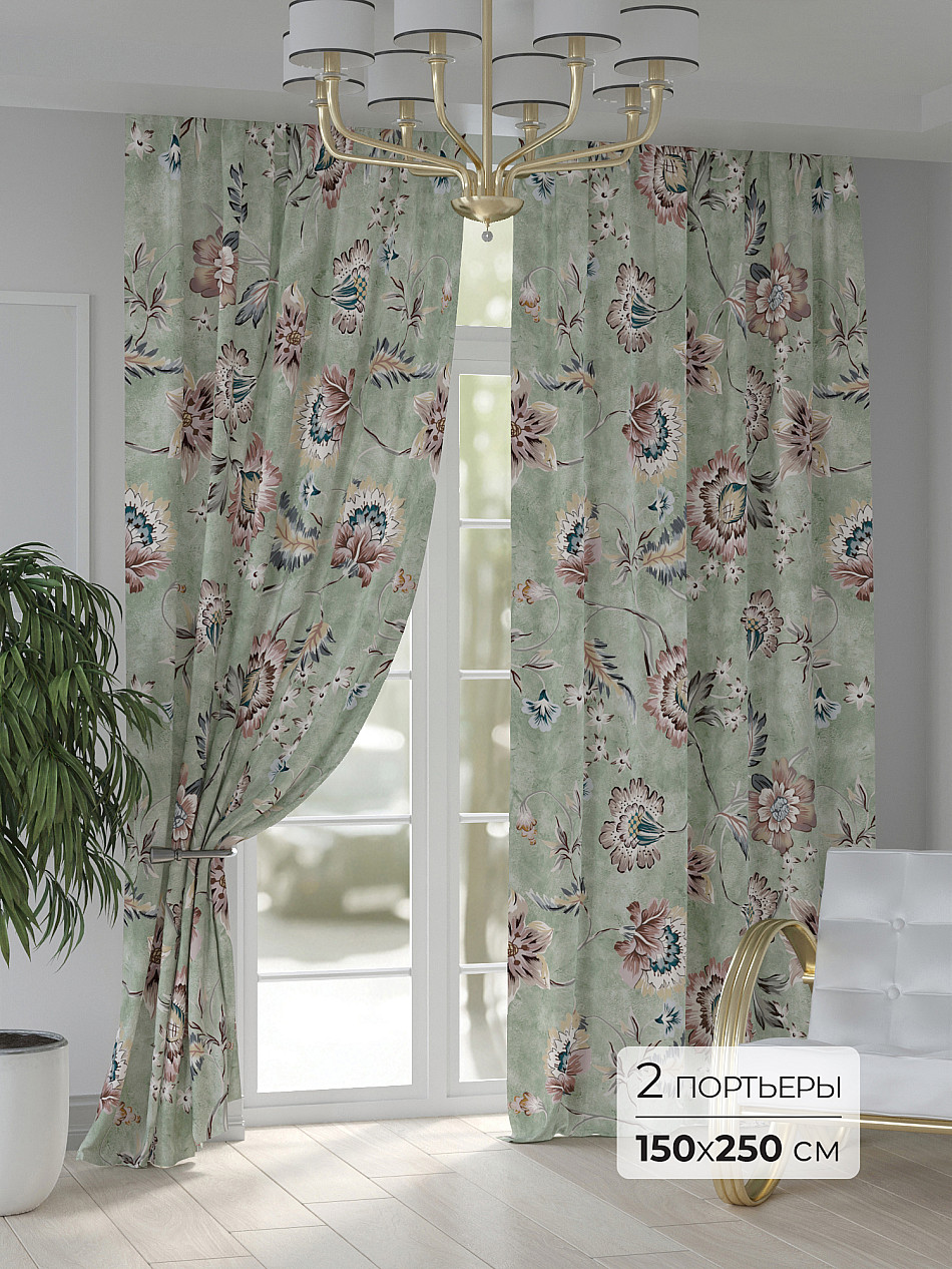 Портьера 2 шт. — 150х250 см. ( Изменить высоту) Крепление: шторная лента (крючки), кулиска Подробнее