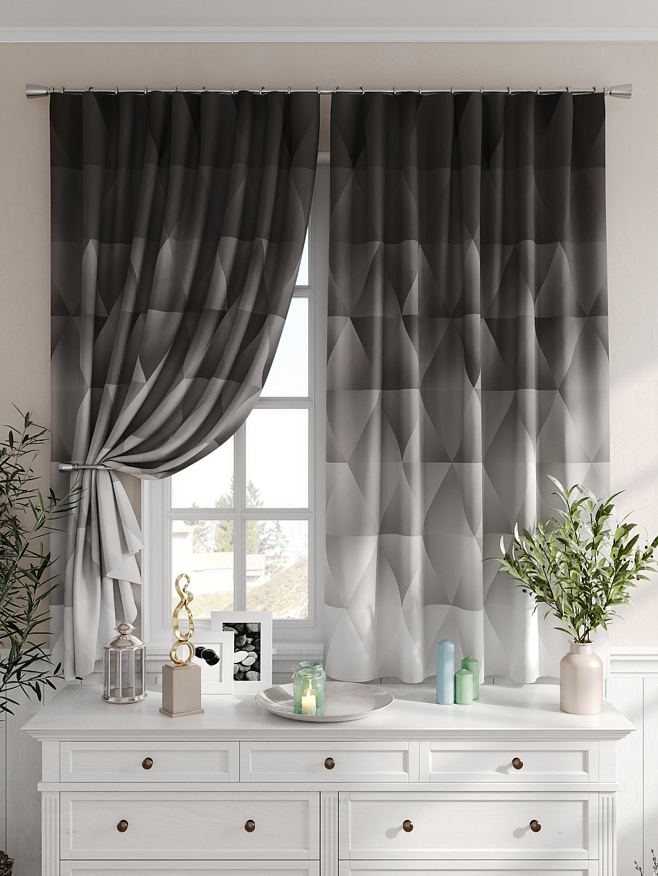 Портьеры 2 шт. Комплект штор из легкой портьерной ткани (габардин) оформлен печатным рисунком. Печатный рисунок дает широкие возможности обновить интерьер фактически не требуя ремонта за счет огромного выбора. Ткани с печатным рисунком безопасны и не содержат токсичных веществ. Не смотря на то, что материал легкий, он имеет высокую плотность, мало загрязнятся и не требует особого ухода даже после стирки, что важно для кухонных занавесок. Шторы не выцветают, не растягиваются, превосходно драпируются, образуя струящиеся складки. Прекрасное решение для создания красоты и уюта с помощью уникальных дизайнов.