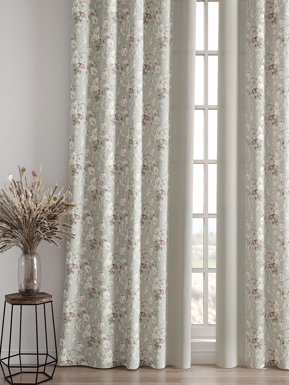 Комплект штор из легкой портьерной ткани (габардин) оформлен печатным рисунком. Печатный рисунок дает широкие возможности обновить интерьер фактически нет требуя ремонта за счет огромного выбора. Ткани с печатным рисунком безопасны и не содержат токсичных веществ. Не смотря на то что, материал легкий, он имеет высокую плотность, мало загрязнятся и не требует особого ухода даже после стирки, что важно для кухонных занавесок. Шторы не выцветают, не растягиваются, превосходно драпируются, образуя струящиеся складки. Прекрасное решение для создания красоты и уюта с помощью уникальных дизайнов.