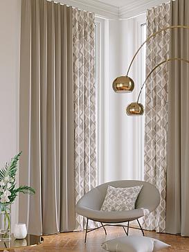 Габардин представляет собой целую группу тканей, которые отличаются содержанием и сочетанием различных волокон – хлопка, шелка, шерсти или синтетики. В зависимости от состава материала, шторы из габардина могут быть разными по плотности и внешнему виду, но всегда отличаются характерным декоративным рубчиком на поверхности. Габардин – идеальная ткань для пошива штор, поскольку она отлично дышит, не мнется, легкая и мягкая на ощупь, но при этом прочная и хорошо защищает от солнечных лучей.