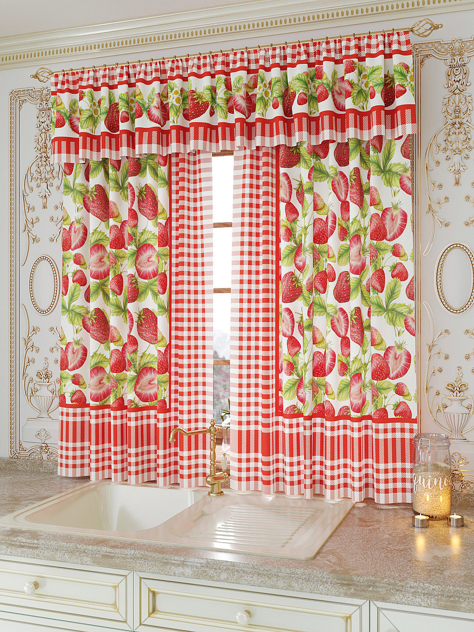 Портьеры 2 шт. Легкая основа оформлена классическим кухонным рисунком. Размеры одного полотна: